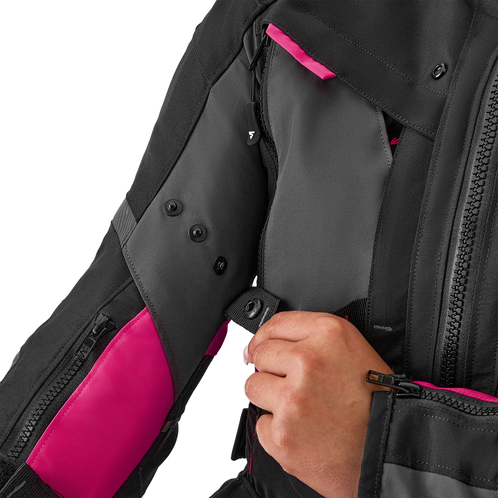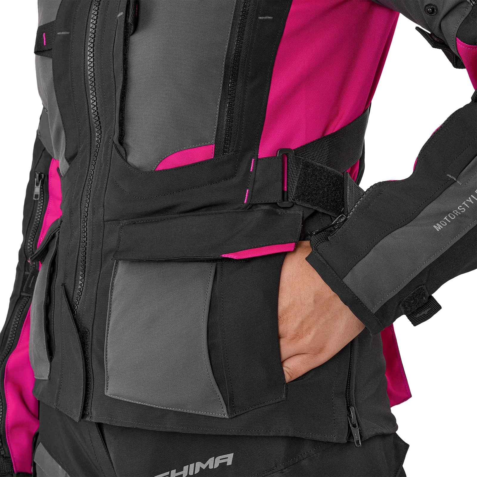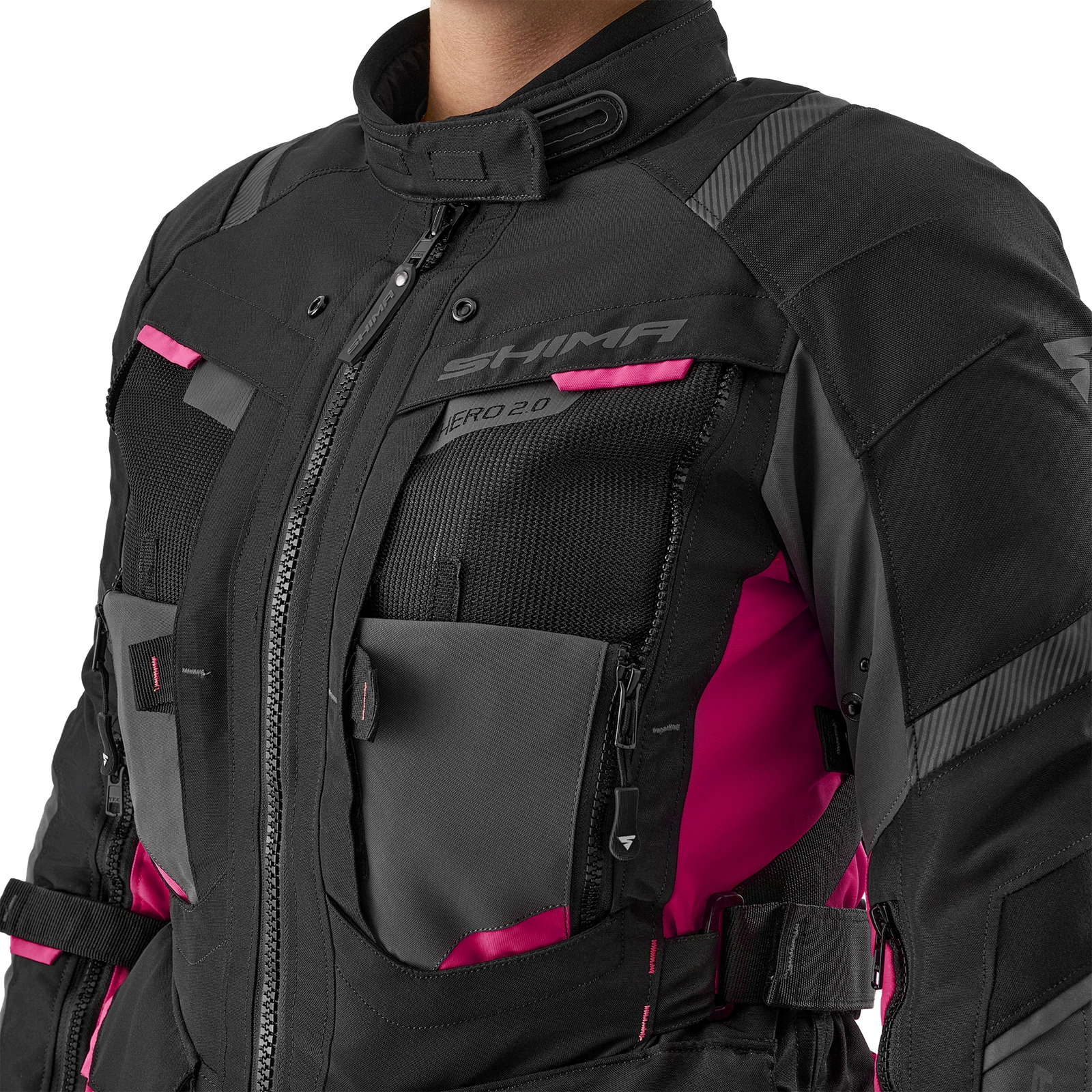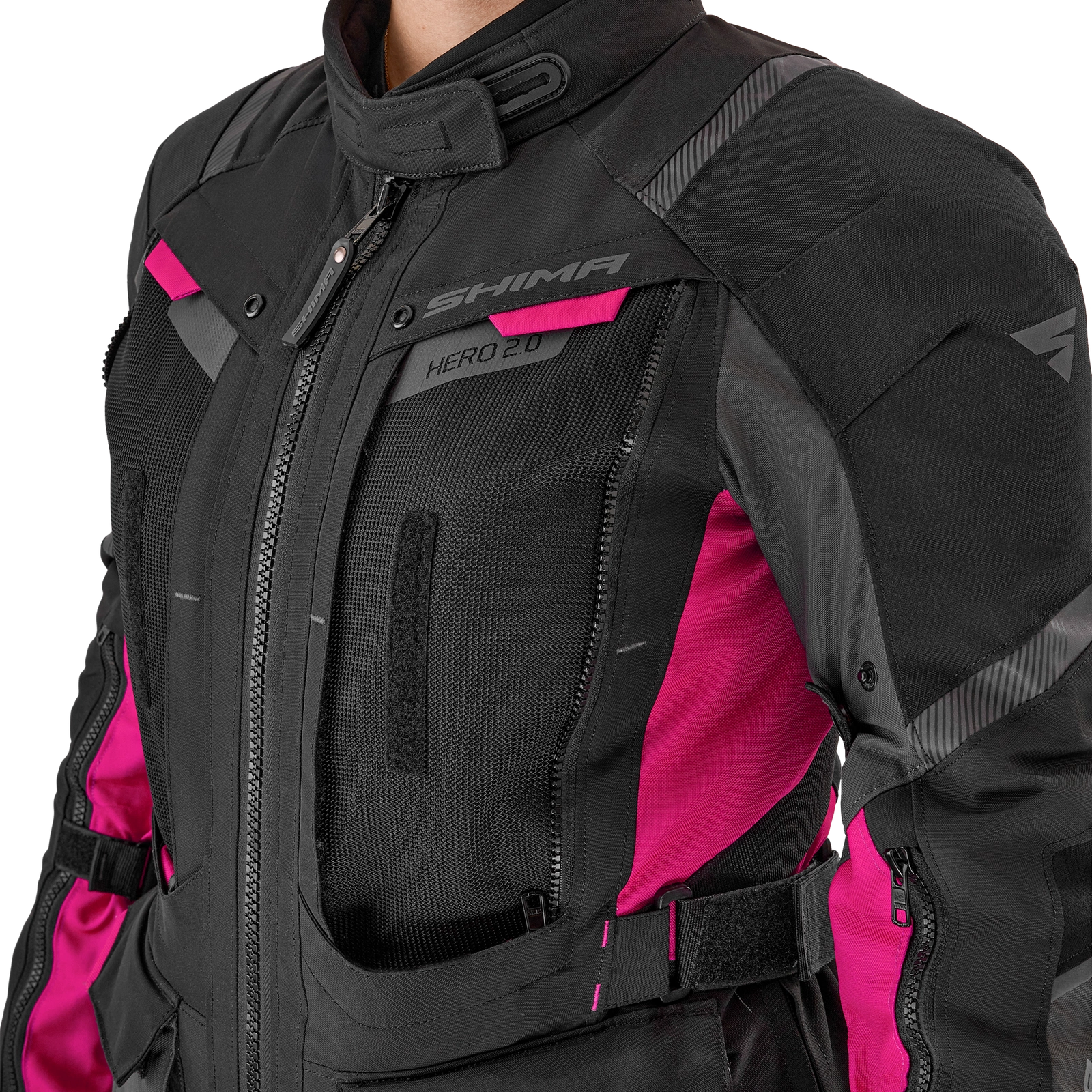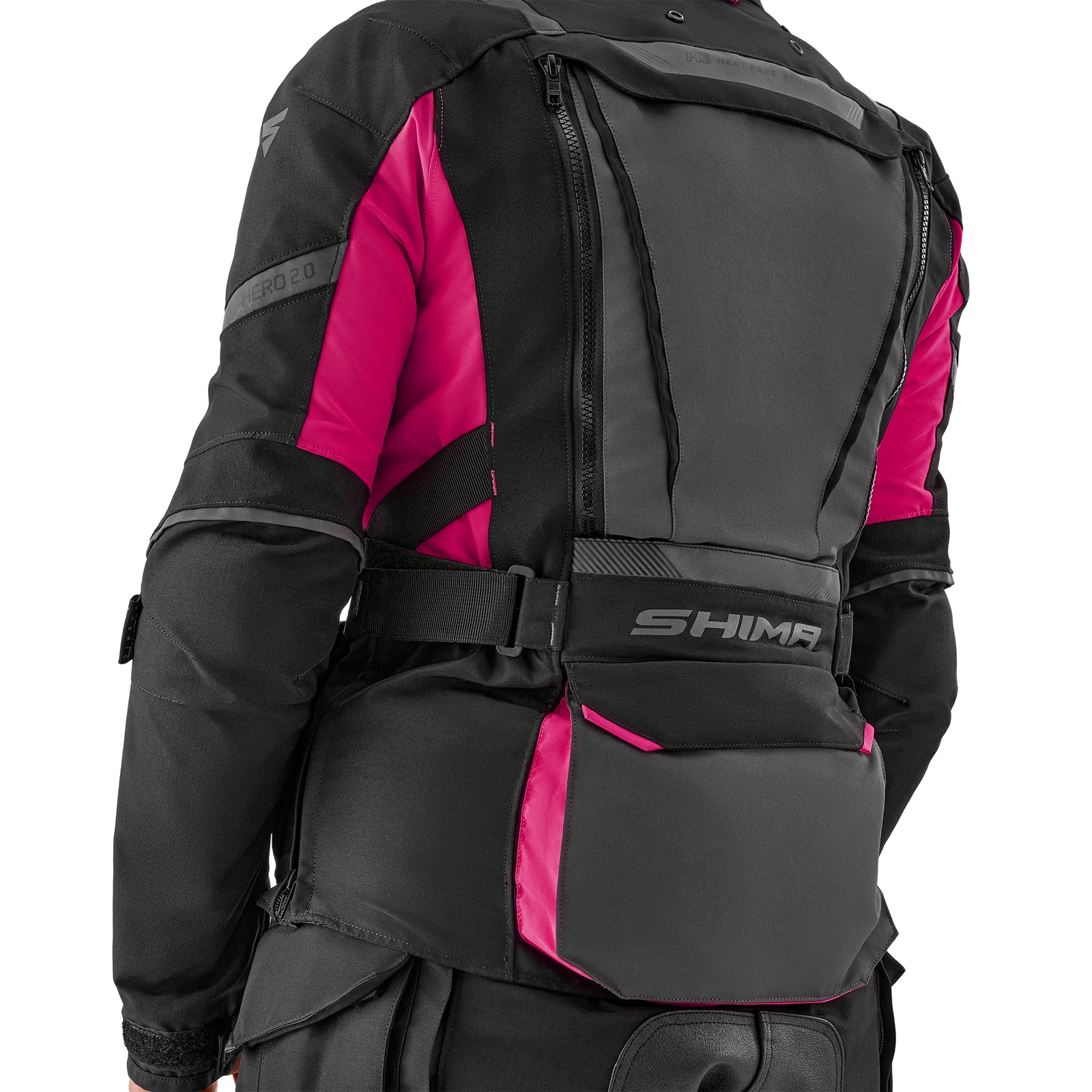 Damska kurtka motocyklowa Shima Hero 2.0 Lady oferuje zaawansowaną, wielopoziomową regulację dopasowania. Talia typu V zapewnia lepsze dopasowanie w okolicach bioder, a dodatkowa regulacja na ramionach, przedramionach i nadgarstkach gwarantuje optymalny komfort oraz stabilność podczas jazdy.
