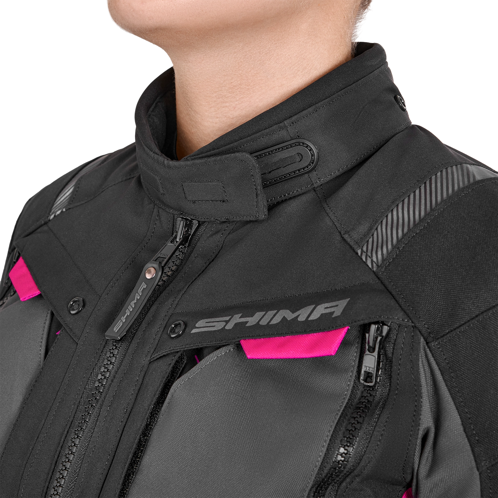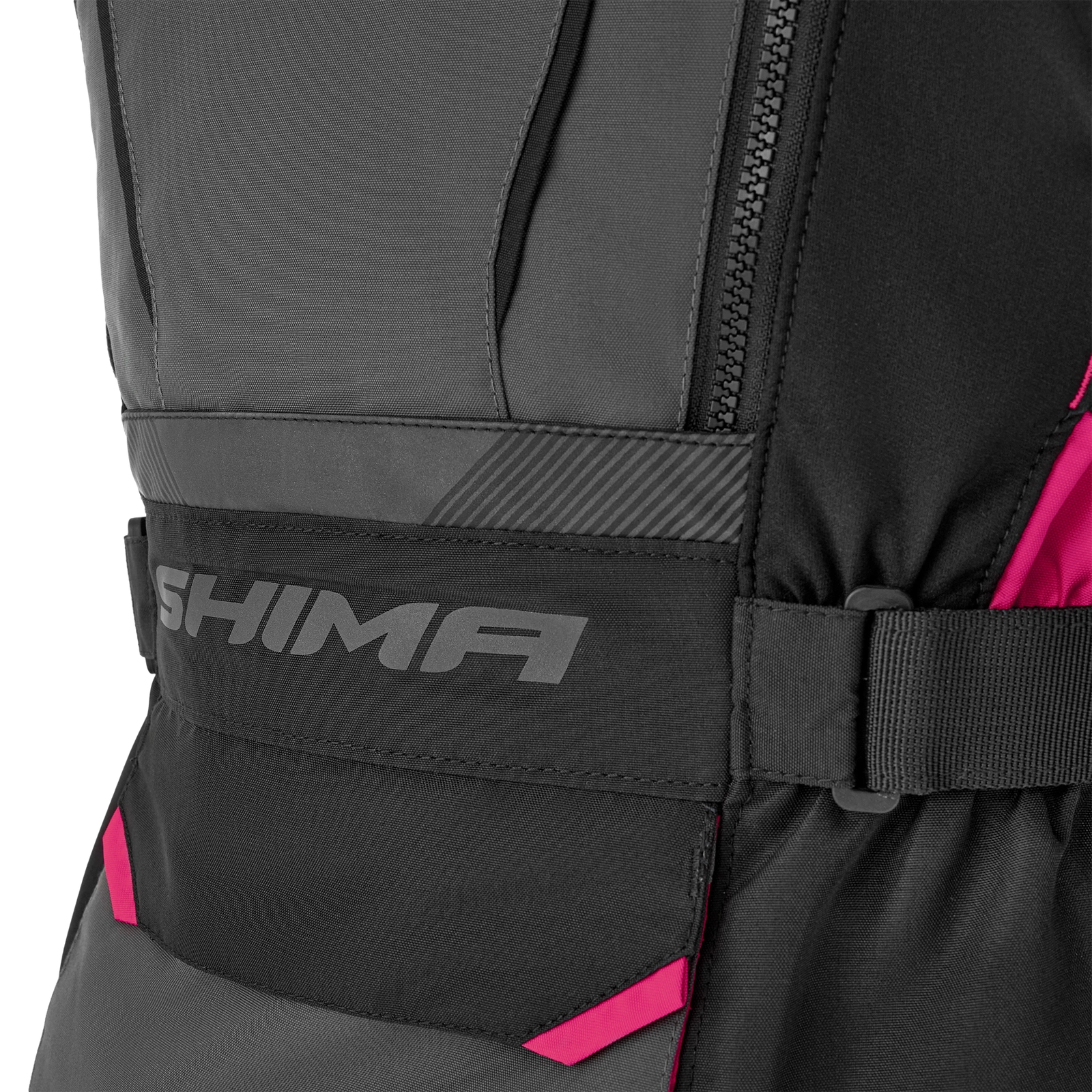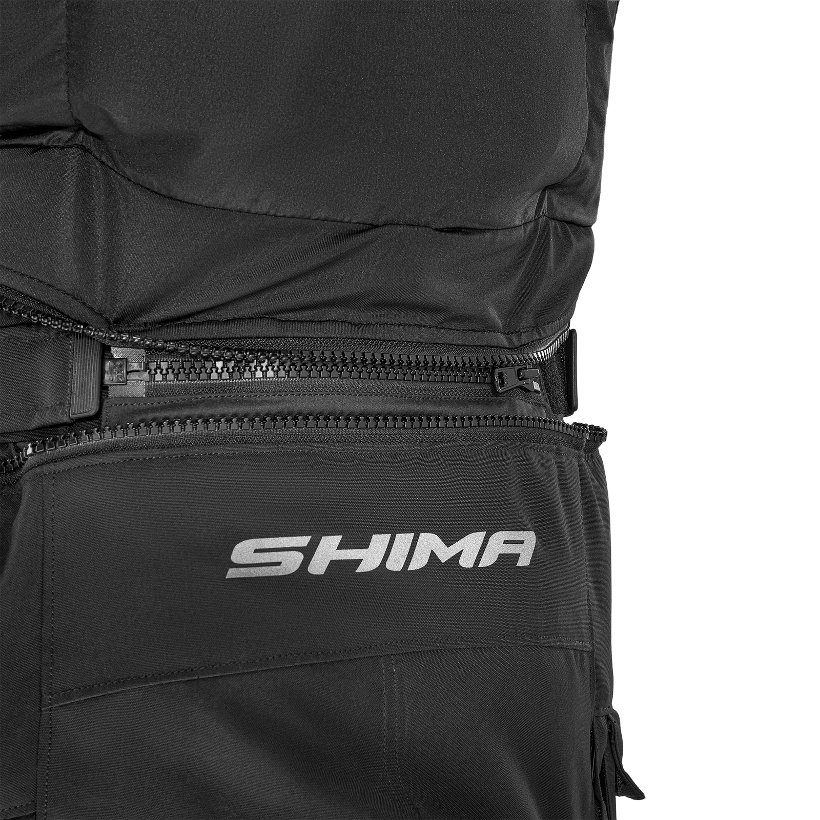 Zamki spinające (krótki i 360°) umożliwiają połączenie kurtki ze spodniami Shima, a system mix&match pozwala na łączenie różnych rozmiarów kurtek z różnymi rozmiarami spodni. Ponadto szelki, które są dostępne jako dodatkowe wyposażenie, zwiększają wsparcie i wygodę podczas długich tras.