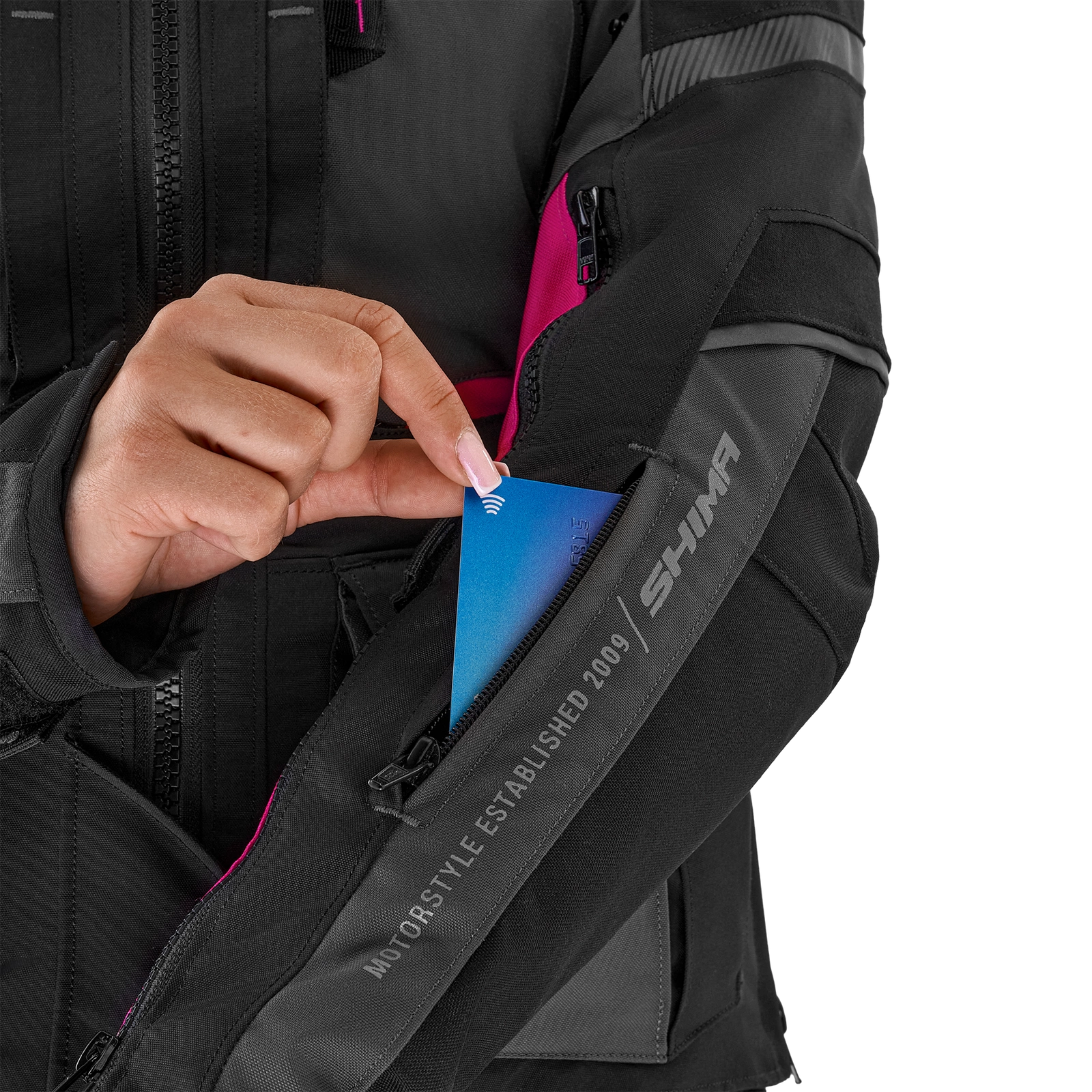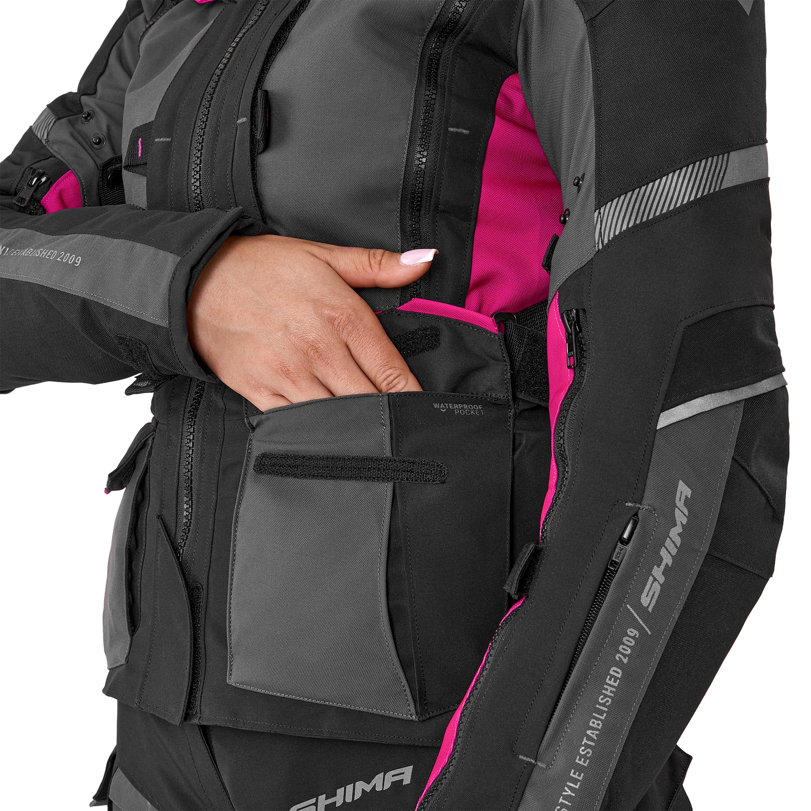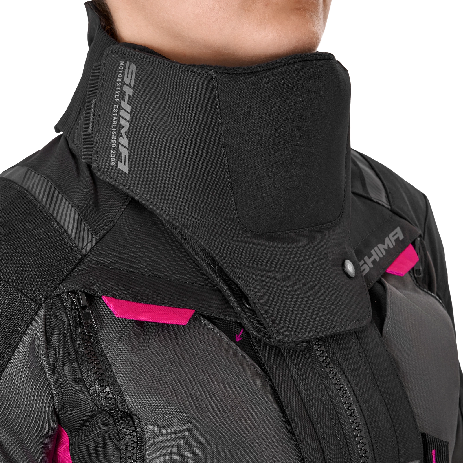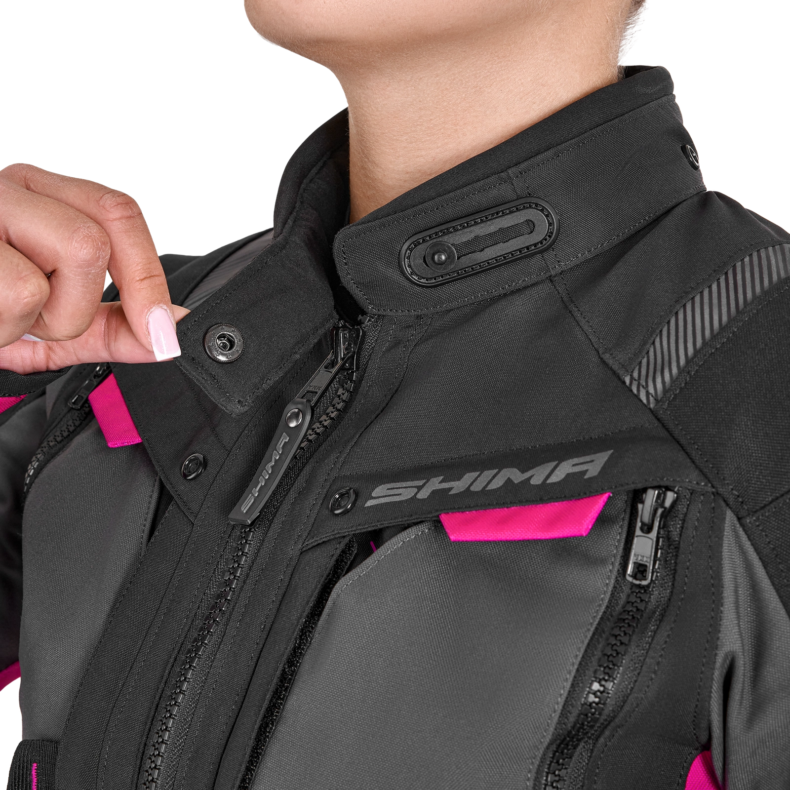 Zamki spinające (krótki i 360°) umożliwiają połączenie kurtki ze spodniami Shima, a system mix&match pozwala na łączenie różnych rozmiarów kurtek z różnymi rozmiarami spodni. Ponadto szelki, które są dostępne jako dodatkowe wyposażenie, zwiększają wsparcie i wygodę podczas długich tras.