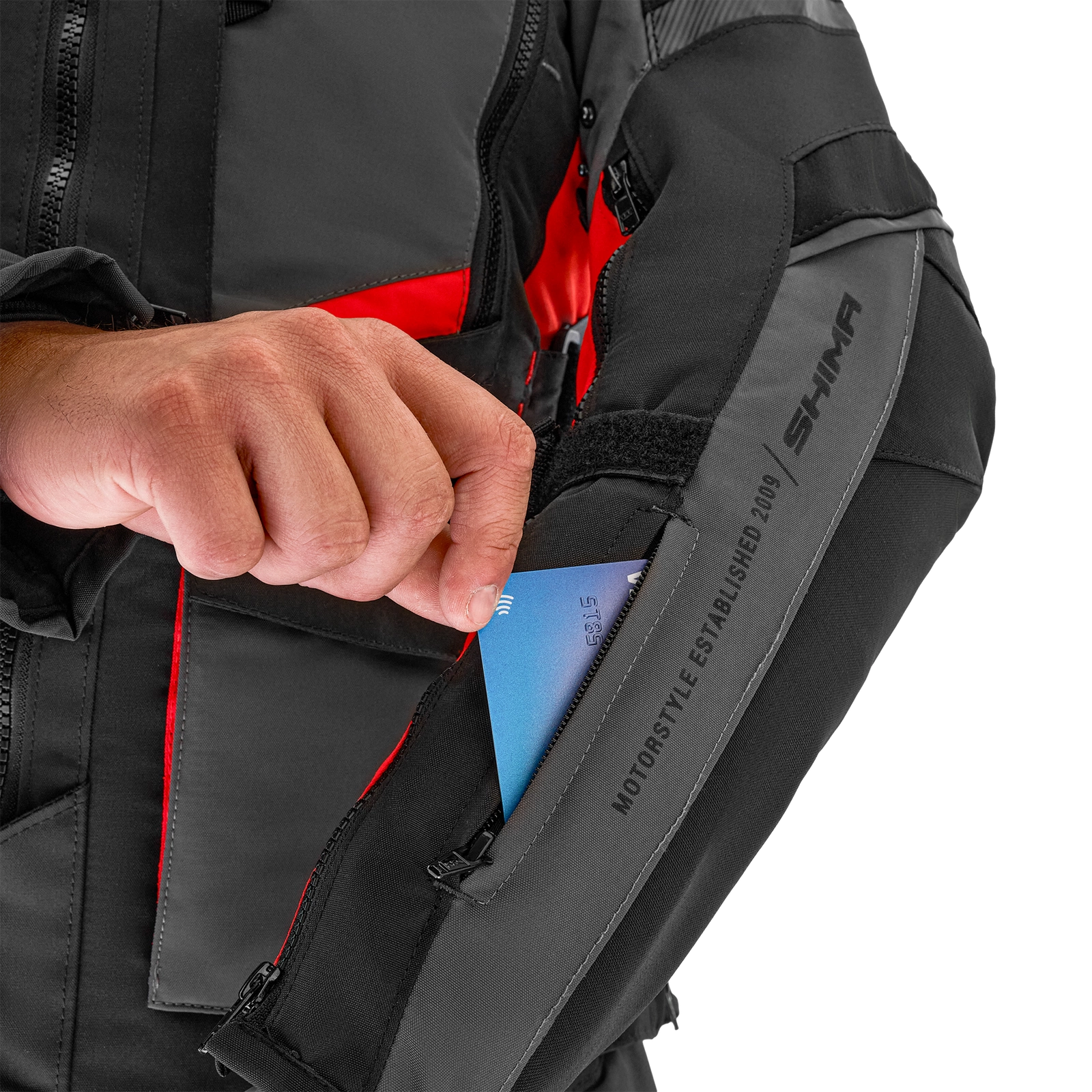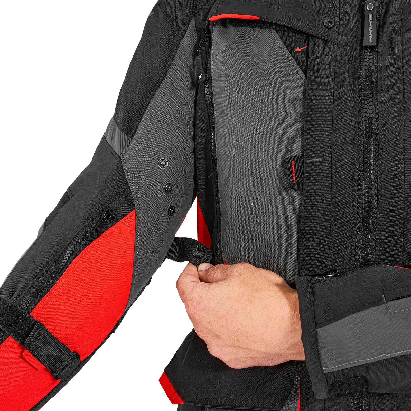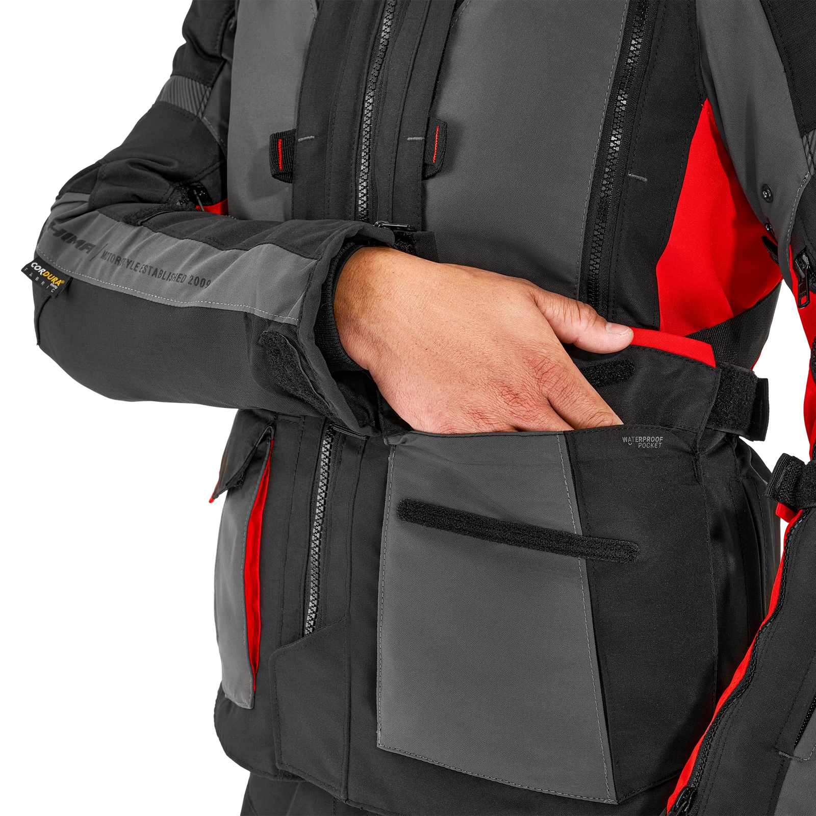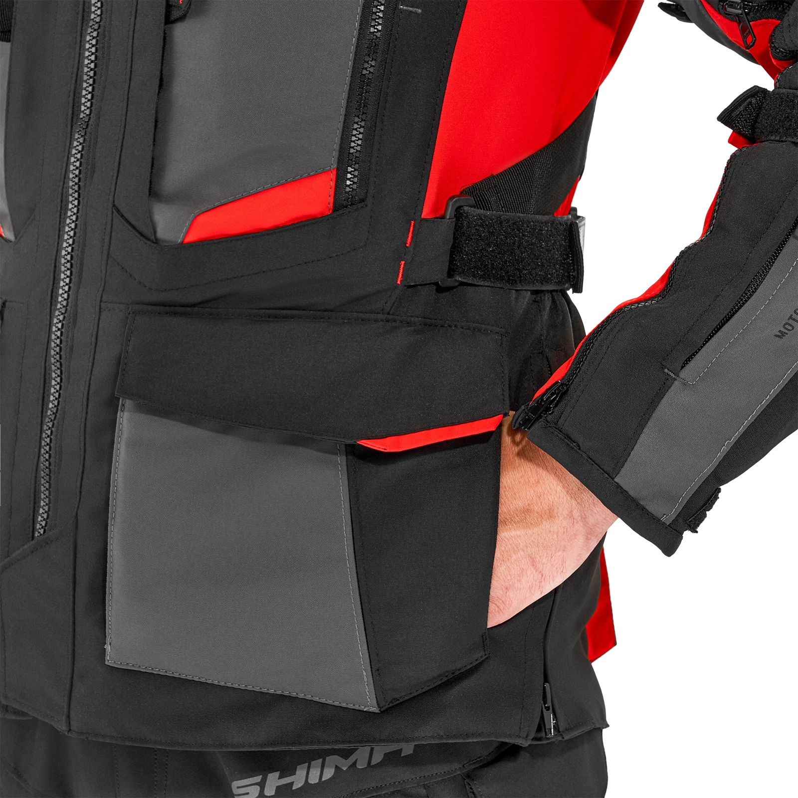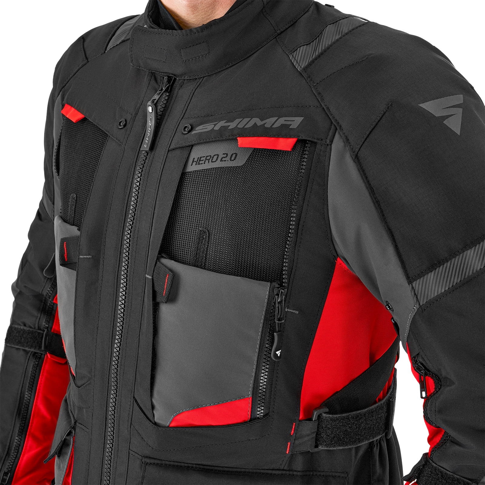 Kurtkę motocyklową Shima Hero 2.0 wyposażono w wiele pojemnych kieszeni, w tym kieszenie typu cargo, które są w stanie pomieścić wszystkie niezbędne podczas jazdy drobiazgi. Jeśli chcesz zabezpieczyć swój telefon lub ważne dokumenty w razie opadów deszczu - skorzystaj z wodoodpornej kieszeni.
