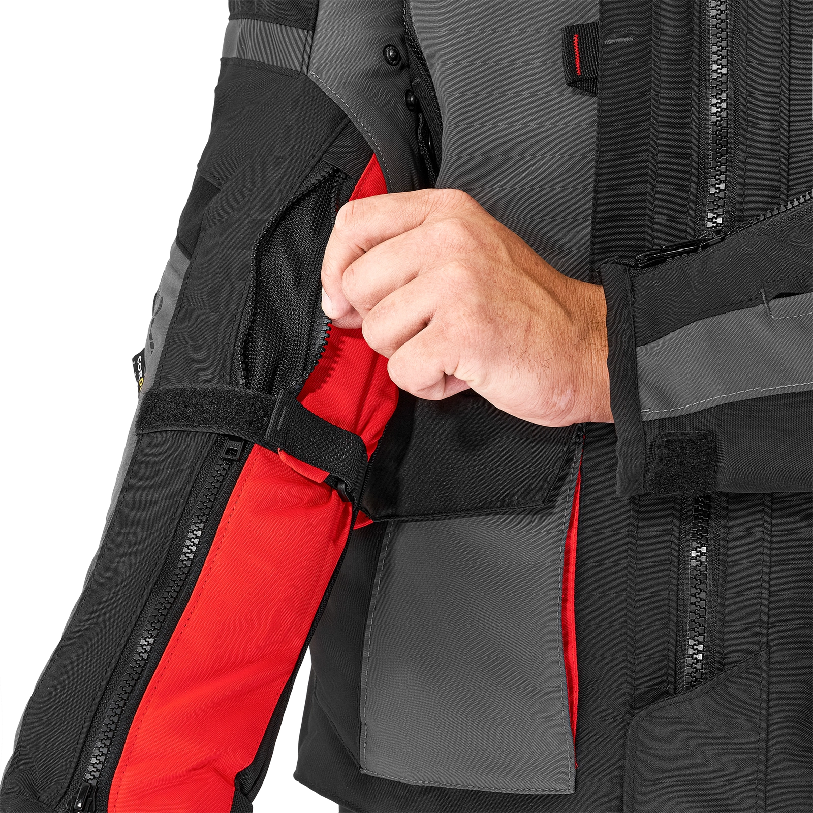 Wydajny system wentylacji skryty jest pod zintegrowanymi napami umożliwiającymi dopasowanie przewiewu do panujących warunków. Panele wentylacyjne znajdują się na klatce piersiowej, rękawach oraz plecach. Są zamykane na specjalne napy zapinane na zamki błyskawiczne, pod którymi kryją się obszerne panele meshowe.