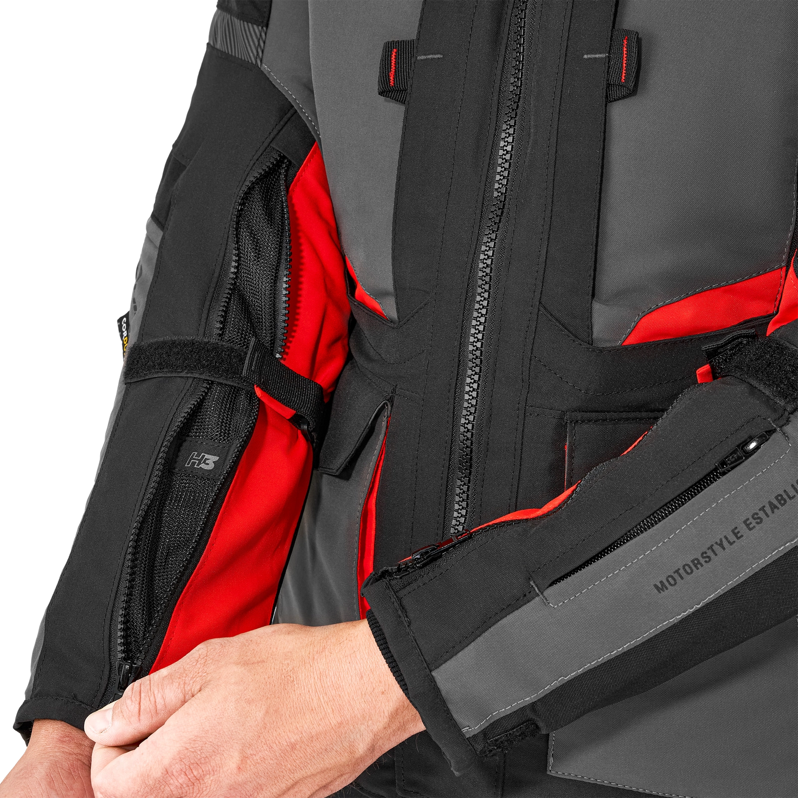 W pasie oraz w rękawach znajdują się specjalne paski regulacyjne, które umożliwiają dopasowanie kurtki do Twojej sylwetki. Za ich pomocą wyregulujesz model do swoich potrzeb i sprawisz, że jazda będzie wyjątkowo komfortowa, a Ty będziesz się świetnie prezentować.