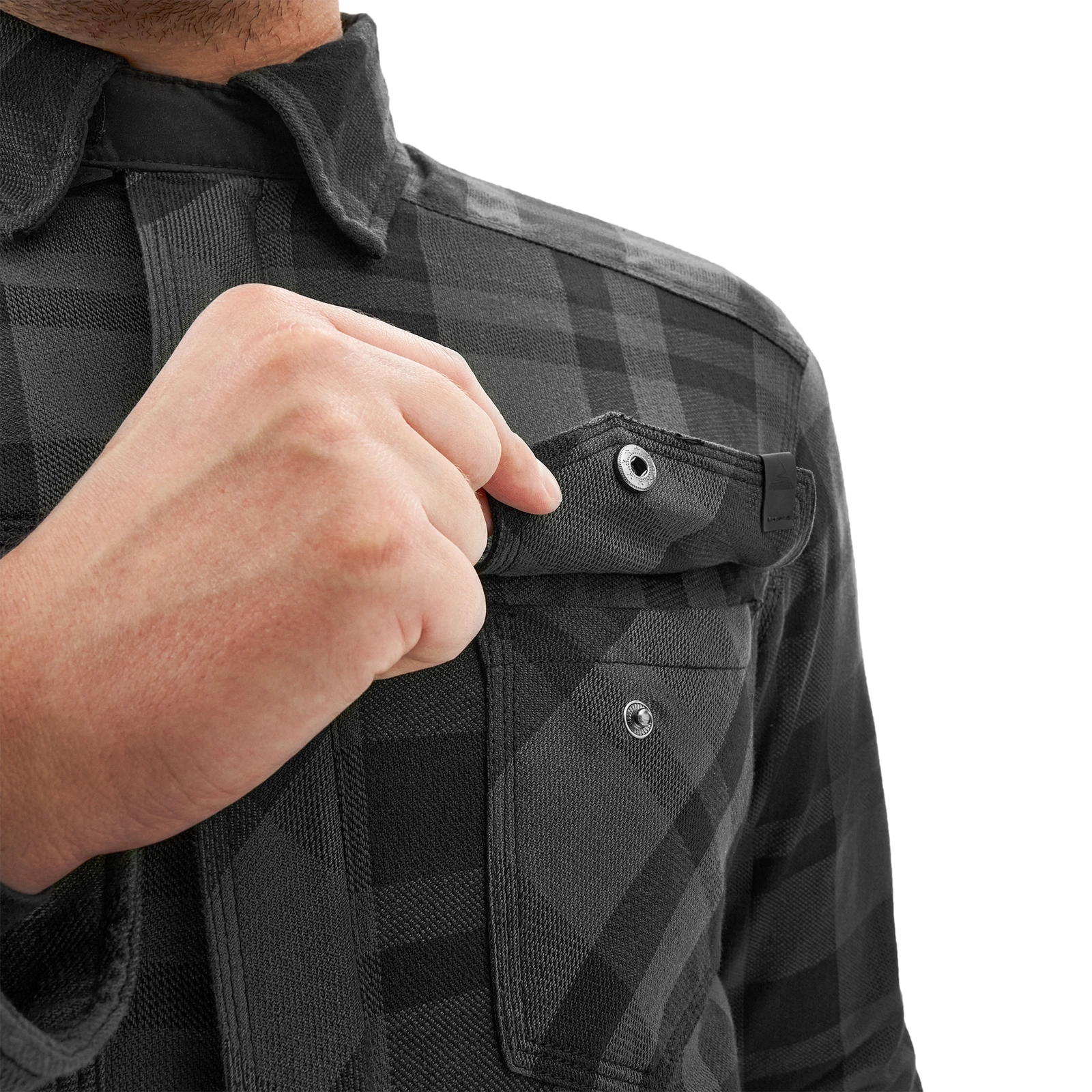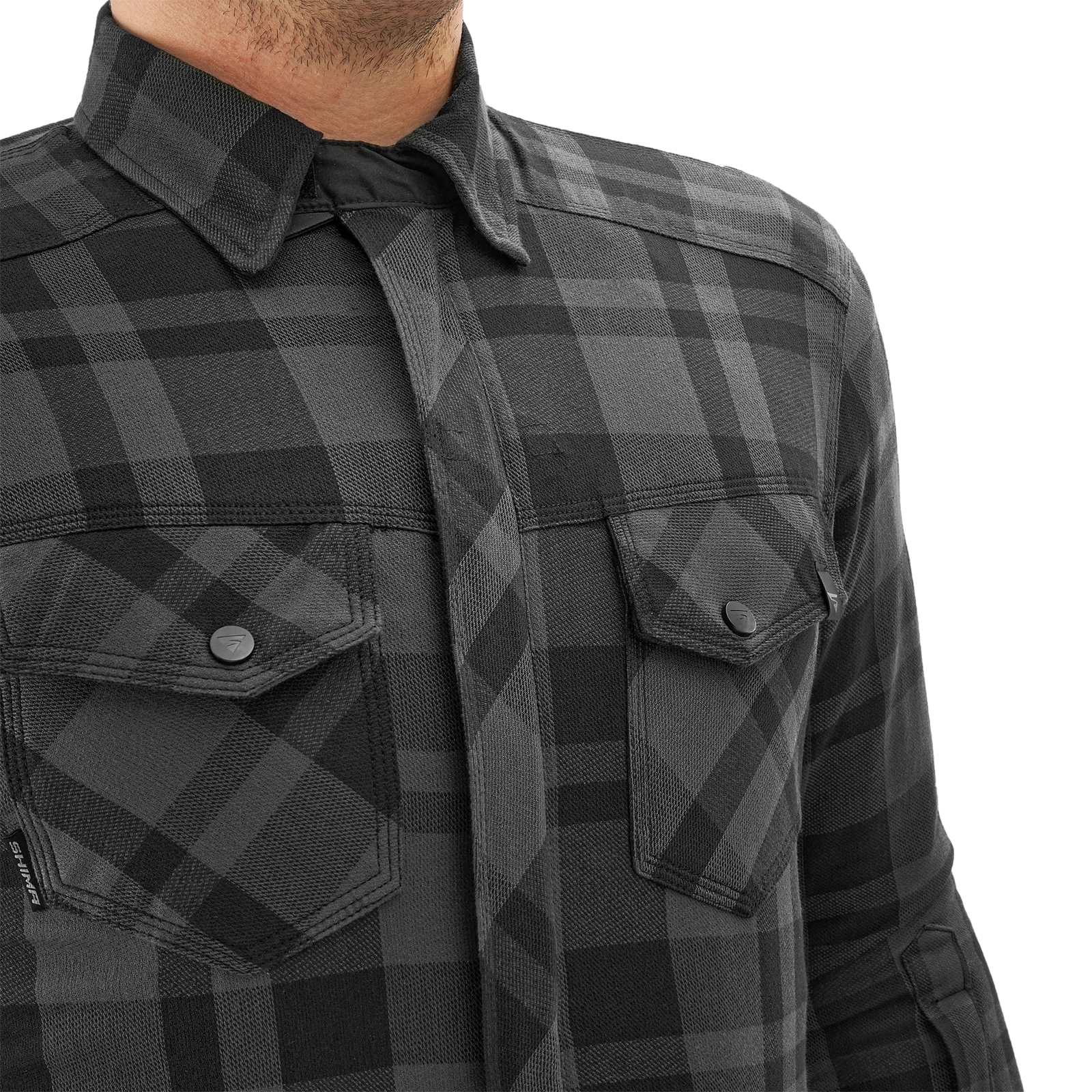 Koszula motocyklowa Shima Renegade 2.0 posiada komplet zabezpieczeń charakterystycznych dla odzieży ochronnej, a przypomina zwykłą, codzienną, koszulę.