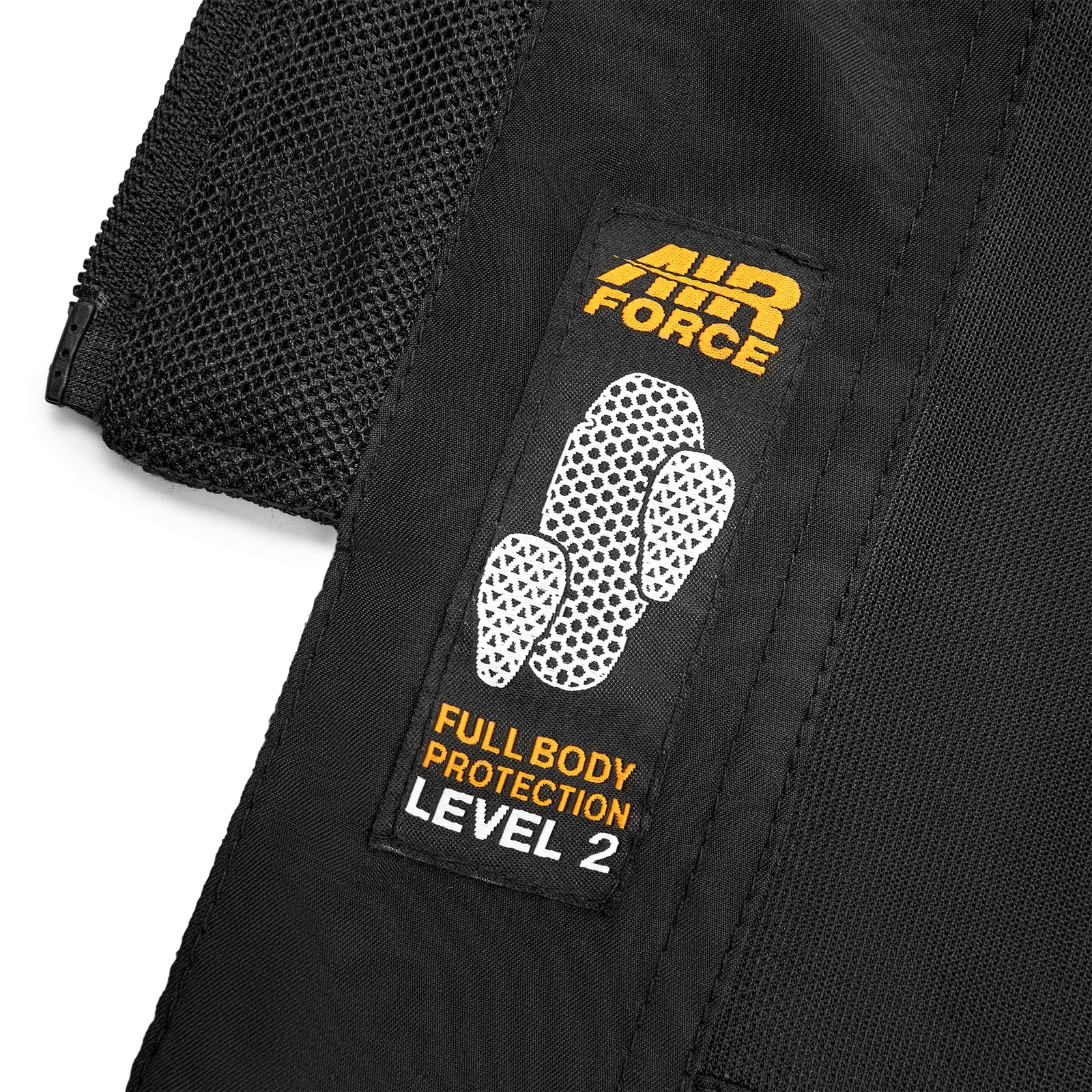 Łokcie, plecy i ramiona wyposażono w zwiększające odporność na urazy i kontuzje, certyfikowane protektory AirForce by Shima 2 levelu. Mają przewiewną konstrukcję. Są elastyczne i nie ograniczają ruchów, dopasowując się do sylwetki osoby je noszącej. Pod warstwą materiału nie są widoczne, więc codzienny wygląd jest zachowany. Ich zadaniem jest pochłanianie siły uderzeniowej oraz amortyzowanie upadków.