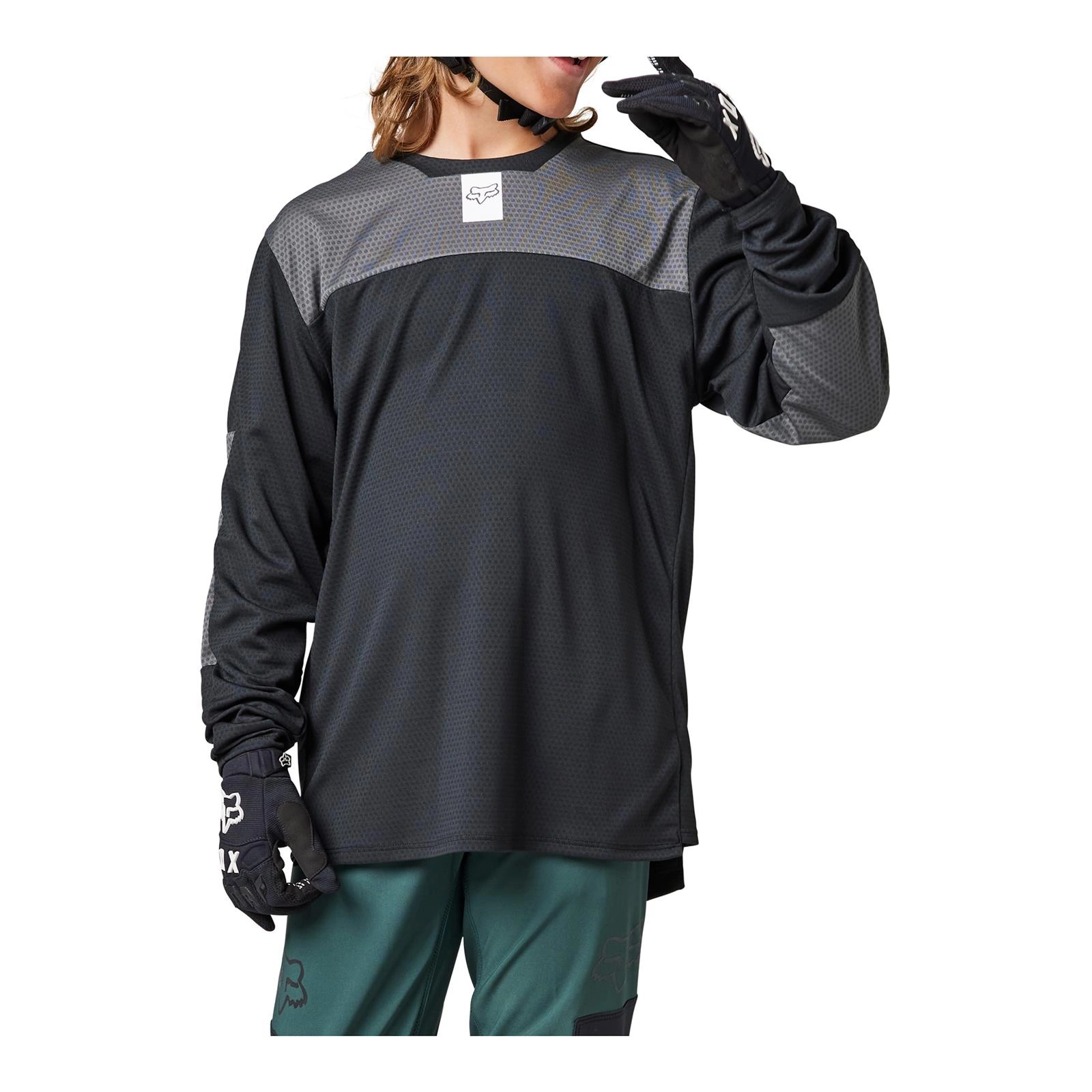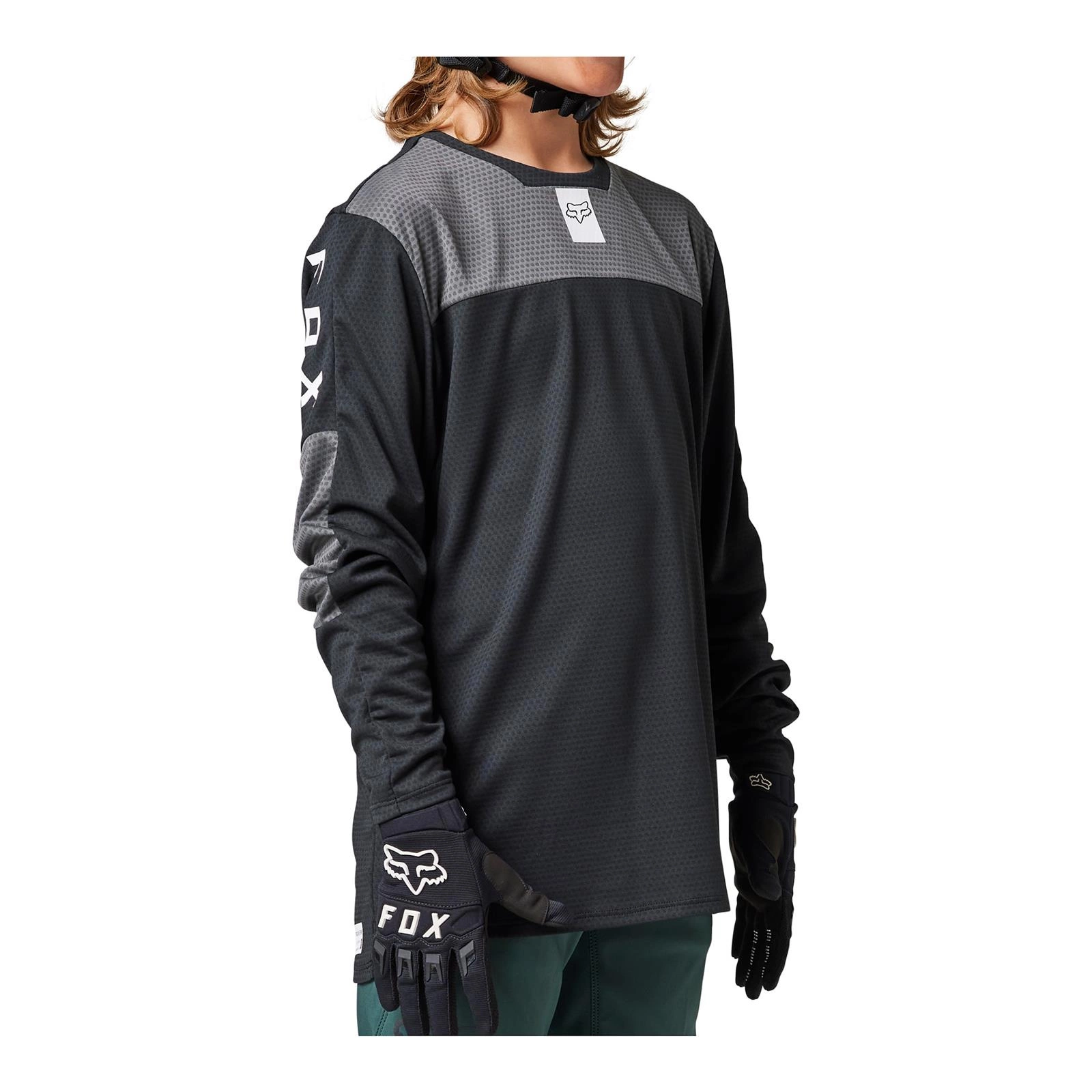 Opinie o Koszulka rowerowa dziecięca FOX JUNIOR DEFEND Z DŁUGIM RĘKAWEM BLACK czarny