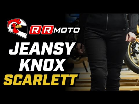 Scarlett Mk 2 to damskie spodnie motocyklowe z wysokim stanem, wykonane z elastycznego denimu Cordura i wzmocnione aramidowymi panelami oraz certyfikowanymi protektorami Knox Micro-Lock.