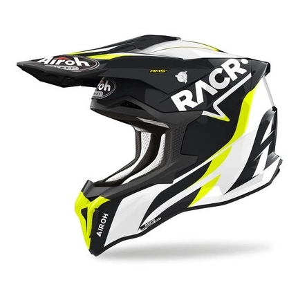 Kask cross AIROH STRYCKER RACR GLOSS czarny biały żółty fluo