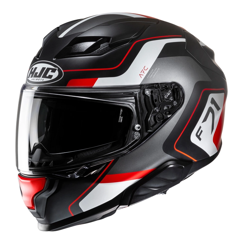 Kask HJC F71 posiada skorupę wykonaną z kompozytu włókna szklanego, która jest niezwykle wytrzymała. Kask spełnia rygorystyczną normę ECE R22.06, obejmującą rozszerzone testy tłumienia energii uderzenia, odporności na penetrację skorupy i integralność strukturalną paska i zapięcia. System awaryjnego wyciągania poduszek policzkowych umożliwia ratownikom medycznym bezpieczne zdjęcie kasku w krytycznej sytuacji.
