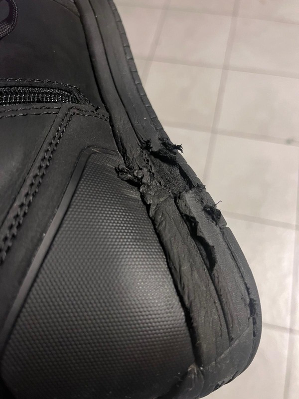 Dzięki wzmocnieniom wokół kostek buty motocyklowe Rebelhorn Spike absorbują uderzenia, chroniąc przed urazami. Wytrzymały materiał TPU na pięcie i w obszarze styku z dźwignią biegów zwiększa bezpieczeństwo i zapobiega ścieraniu. Buty spełniają normę EN-13634:2018 na poziomie ochrony Level 1221, co oznacza, że przeszły wymagane testy pod kątem odporności na ścieranie, przecięcie, sztywności poprzecznej oraz ochrony kostki.