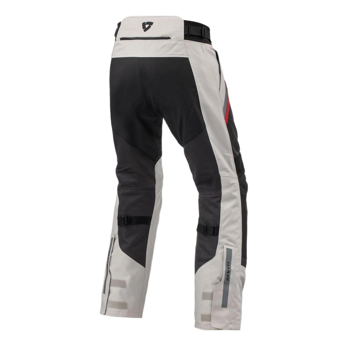 Panele antypoślizgowe na pośladkach zapewniają dodatkową stabilność i pewność siedzenia podczas jazdy, co pomaga uniknąć ślizgania się na siedzeniu motocykla i utrzymać wygodną pozycję. Krótki zamek spinający pozwala na połączenie spodni z kompatybilnymi kurtkami Revit, a zapięcie na guzik B-lock umożliwia ich łatwe i szybkie zapinanie oraz odpinanie. Możliwość regulacji w pasie i na nogawkach pozwala na idealne dopasowanie do sylwetki, a dwie kieszenie zewnętrzne zapewniają wygodne przechowywanie drobnych przedmiotów.