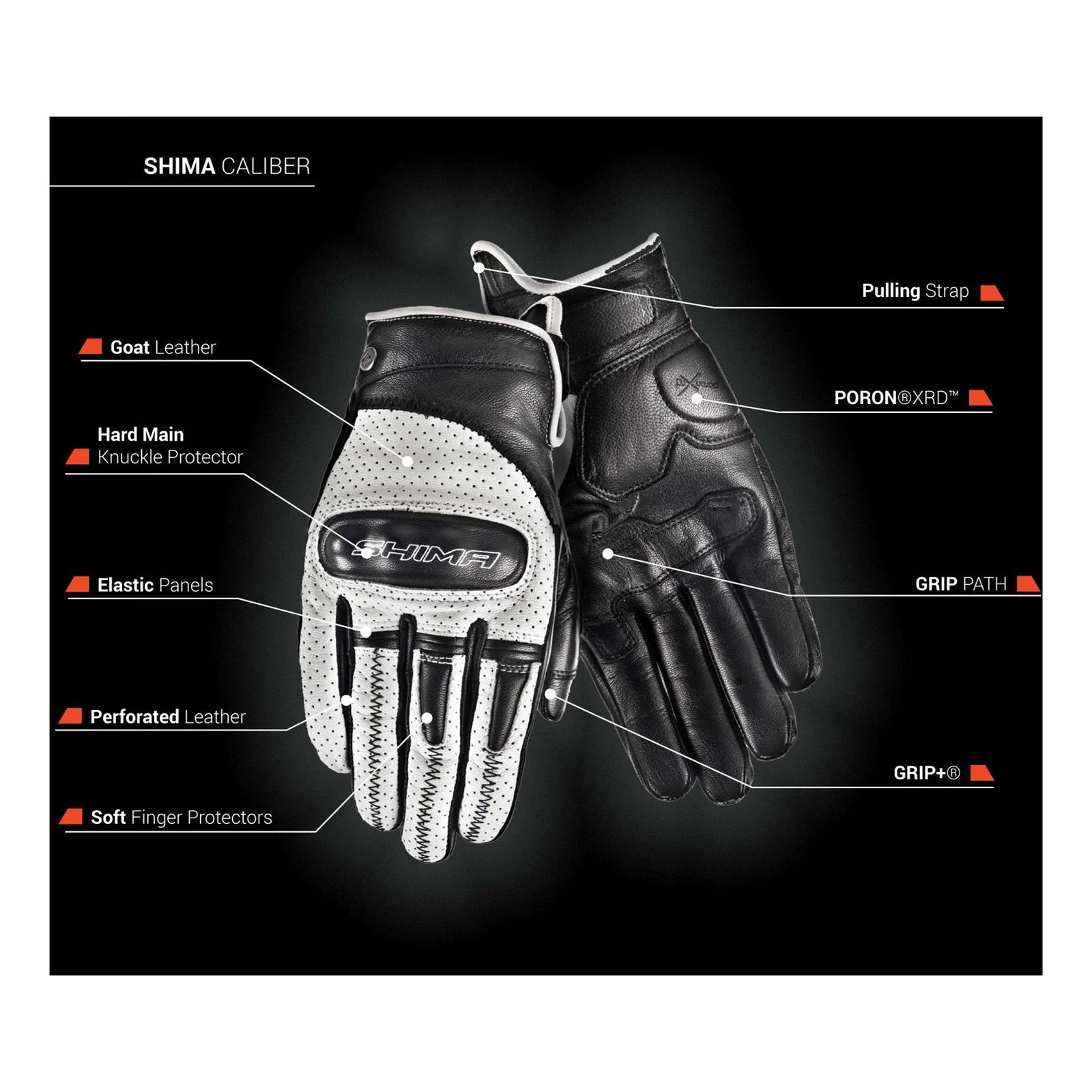 Eleganckie, klasyczne rękawice motocyklowe Shima Caliber wykonane z niezwykle miękkiej i specjalnie wyprawianej naturalnej skóry.