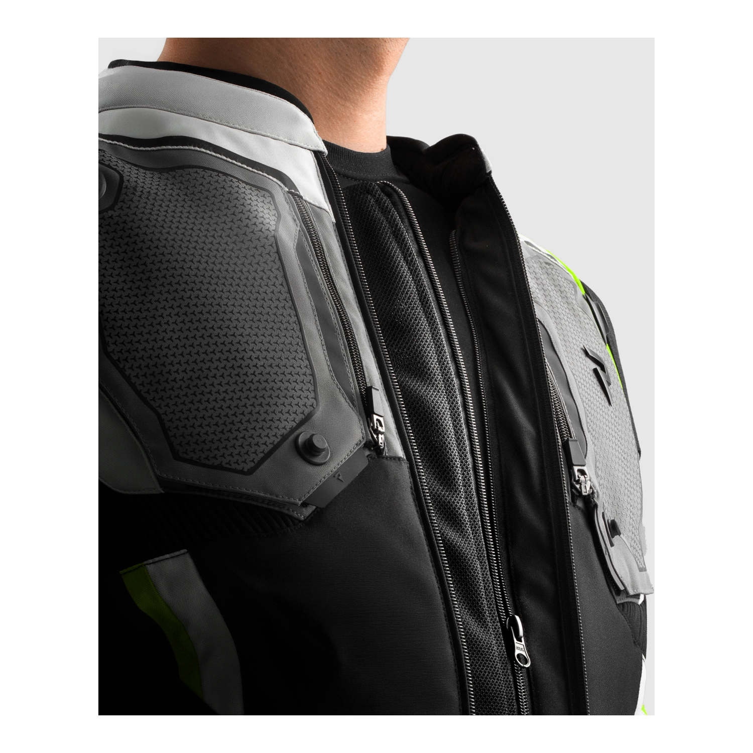 Kurtka wyposażona w komplet ochraniaczy Armanox Level 2 na łokciach (regulowane), barkach i plecach (model 203 size L). Zewnętrzne slidery na barkach zwiększają odporność na uszkodzenia mechaniczne.