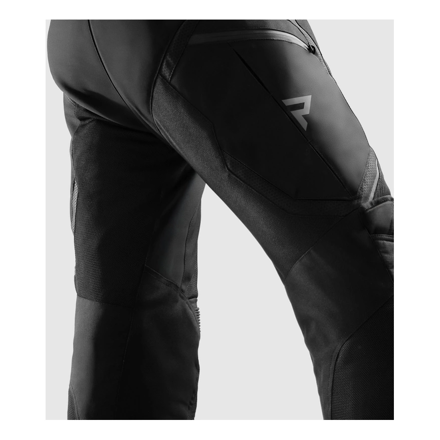 System regulacji w pasie i nogawkach umożliwia odpowiednie dopasowanie do sylwetki oraz do butów motocyklowych. Szybkoschnąca podszewka Quickdry i 3 kieszenie, w tym jedna wodoodporna kieszeń cargo, zwiększają funkcjonalność. Zamki 8VST pozwalają na połączenie spodni z kurtką.