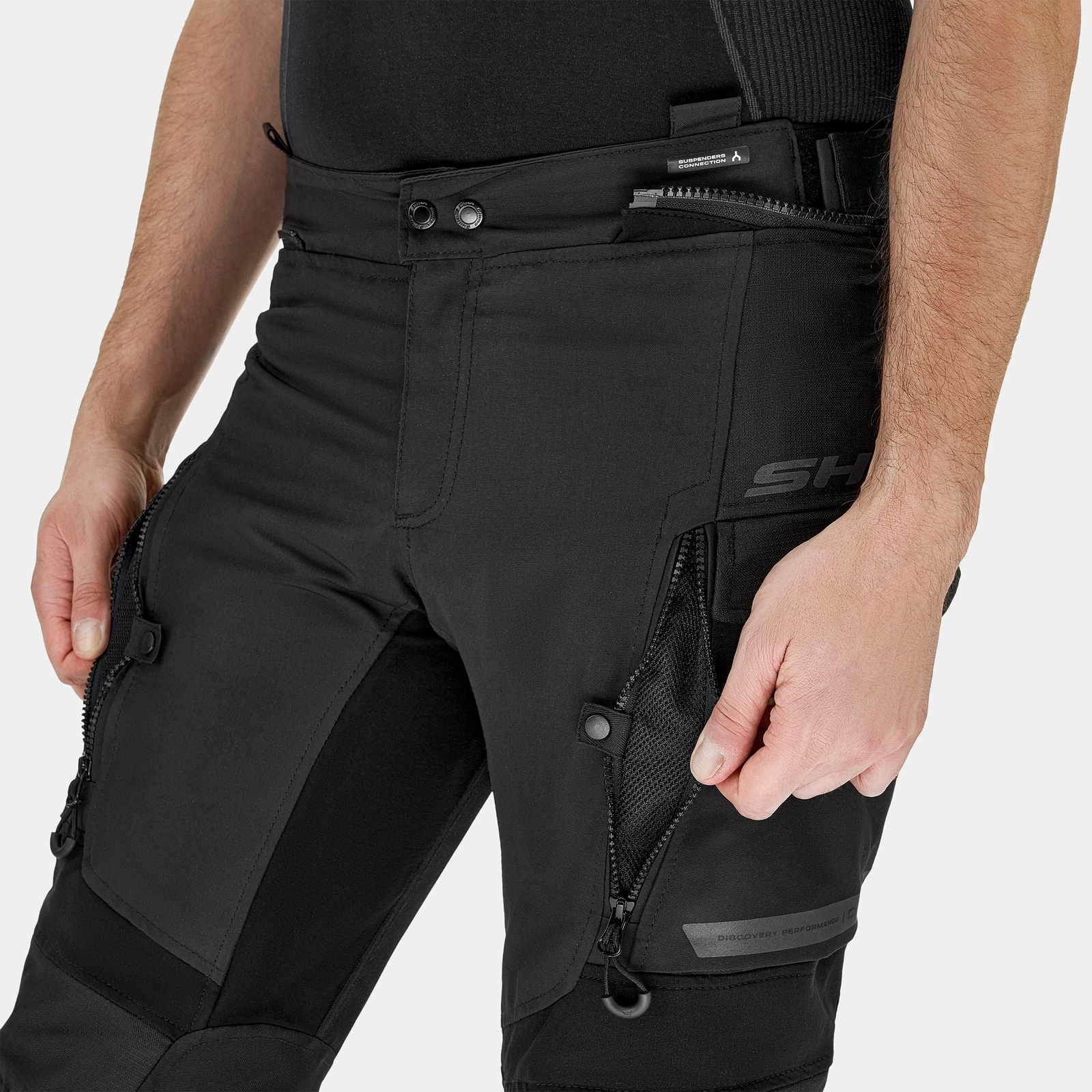Rzepy umieszczone w okolicach kolan, bioder i na końcach nogawek umożliwiają idealne dopasowanie odzieży do ciała. Dodatkowo, dla większego komfortu, spodnie wyposażono w elastyczny panel na lędźwiach, który zwiększa swobodę ruchów. Spodnie motocyklowe Shima Dune posiadają zamki spinające – krótki oraz 360°, które umożliwiają łatwe połączenie z kurtką Shima, tworząc kompletny zestaw zapewniający stabilność podczas jazdy.