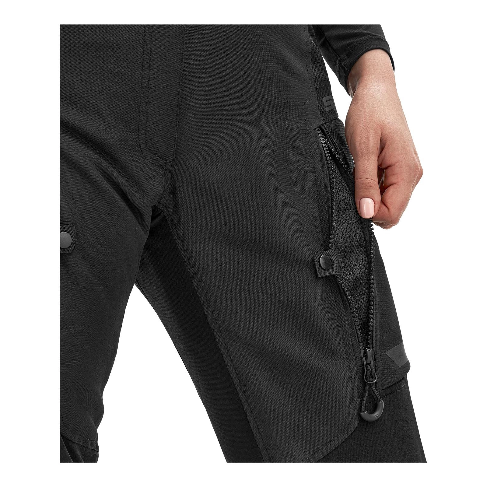 Panele odblaskowe Night Vision System znacząco poprawiają widoczność motocyklistki po zmroku i w niesprzyjających warunkach pogodowych. Na biodrach znajdują się wodoodporne kieszenie cargo, idealne do przechowywania drobiazgów, takich jak dokumenty, telefon czy portfel, z gwarancją ochrony przed wilgocią. Spodnie można doposażyć w opcjonalne szelki, a szeroka gama kolorystyczna pozwala dopasować je do kurtki, motocykla oraz własnego stylu, podkreślając indywidualny charakter każdej motocyklistki.