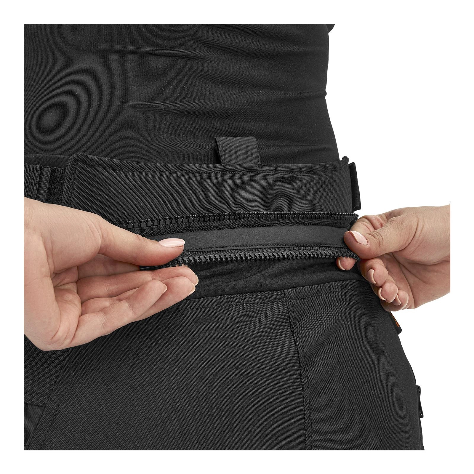 W okolicach kolan, bioder oraz na końcach nogawek umieszczono rzepy, które pozwalają na szybkie dopasowanie odzieży do ciała, gwarantując komfort oraz stabilność podczas ruchu. Elastyczny panel w okolicach lędźwiowych zapewnia większą swobodę ruchów. Ponadto, damskie spodnie Shima Dune Lady zostały wyposażone w zamki umożliwiające połączenie z kompatybilną kurtką Shima i stworzenie funkcjonalnego zestawu motocyklowego.