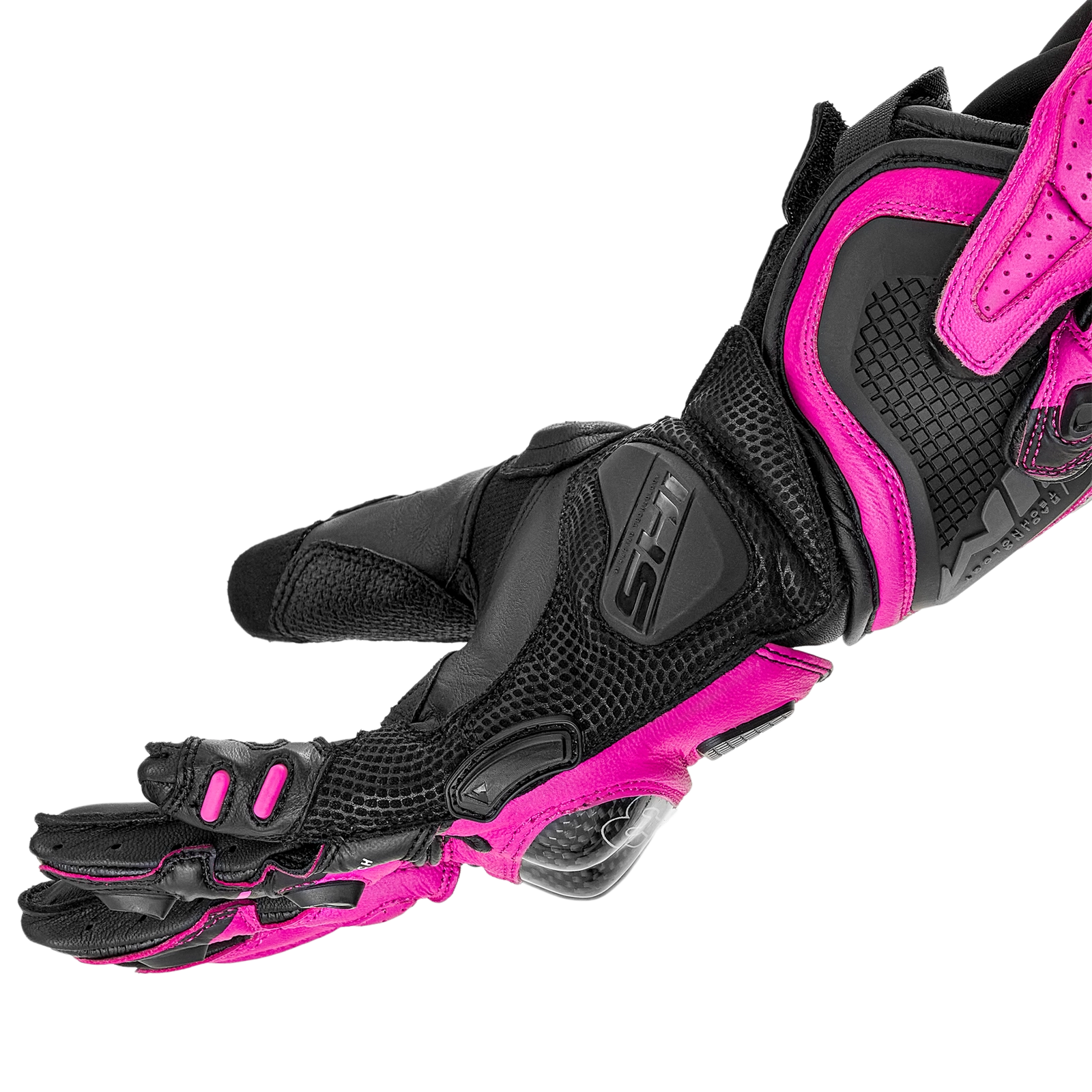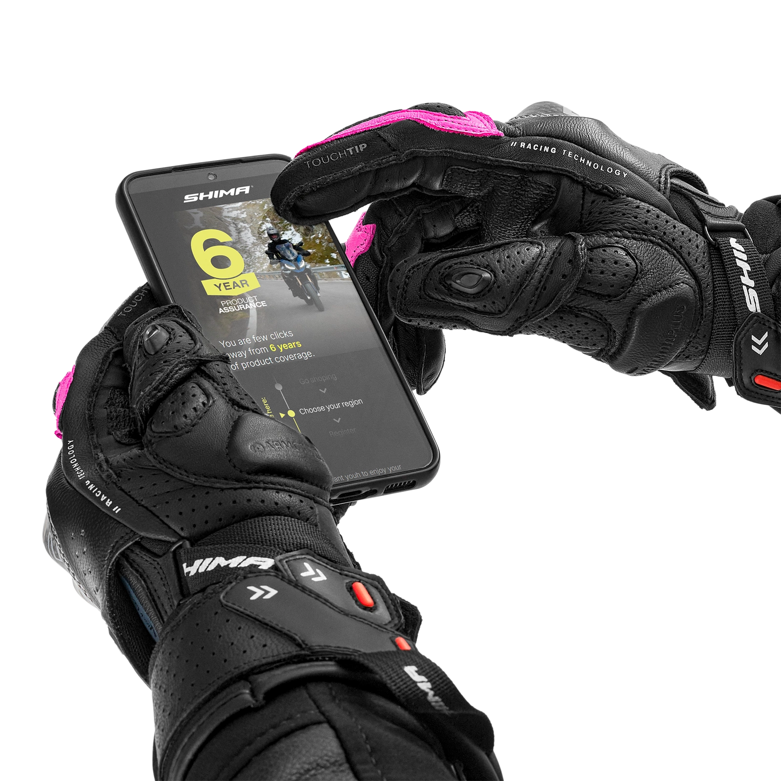 Damskie rękawice motocyklowe Shima RS-3 Lady zostały zaprojektowane z myślą o komforcie i ergonomii, oferując wstępnie zakrzywione palce, które zapewniają naturalne ułożenie dłoni i zmniejszają zmęczenie podczas długich przejażdżek. Elastyczne panele, w tym wstawki ze stretchu oraz panele harmonijkowe zapewniają swobodę ruchu. Zapięcie V-Lock Pro pozwala na szybkie dopasowanie rękawicy do nadgarstka, a panele Touch Tip umożliwiają obsługę urządzeń mobilnych bez konieczności zdejmowania rękawic.