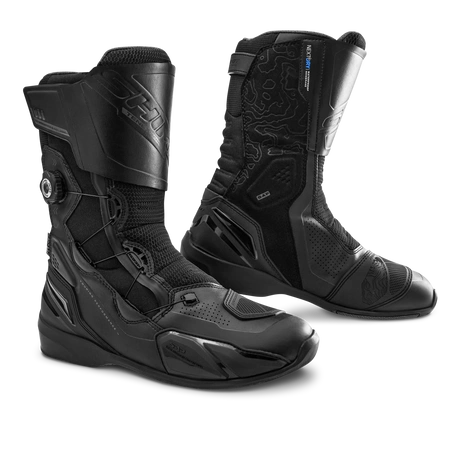Wkładka polipropylenowa zapewnia długotrwałą ochronę stóp, jednocześnie zwiększając stabilność oraz komfort jazdy na motocyklu. Antypoślizgowa podeszwa ESG zapewnia pewny kontakt z podłożem, minimalizując ryzyko poślizgu. System zapinania ATOP z pokrętłem umieszczonym na boku buta umożliwia dokładne i szybkie dopasowanie obuwia do stopy, gwarantując równocześnie wygodę zakładania i zdejmowania. Uzupełnieniem jest zapięcie na rzep, które dodatkowo stabilizuje but.