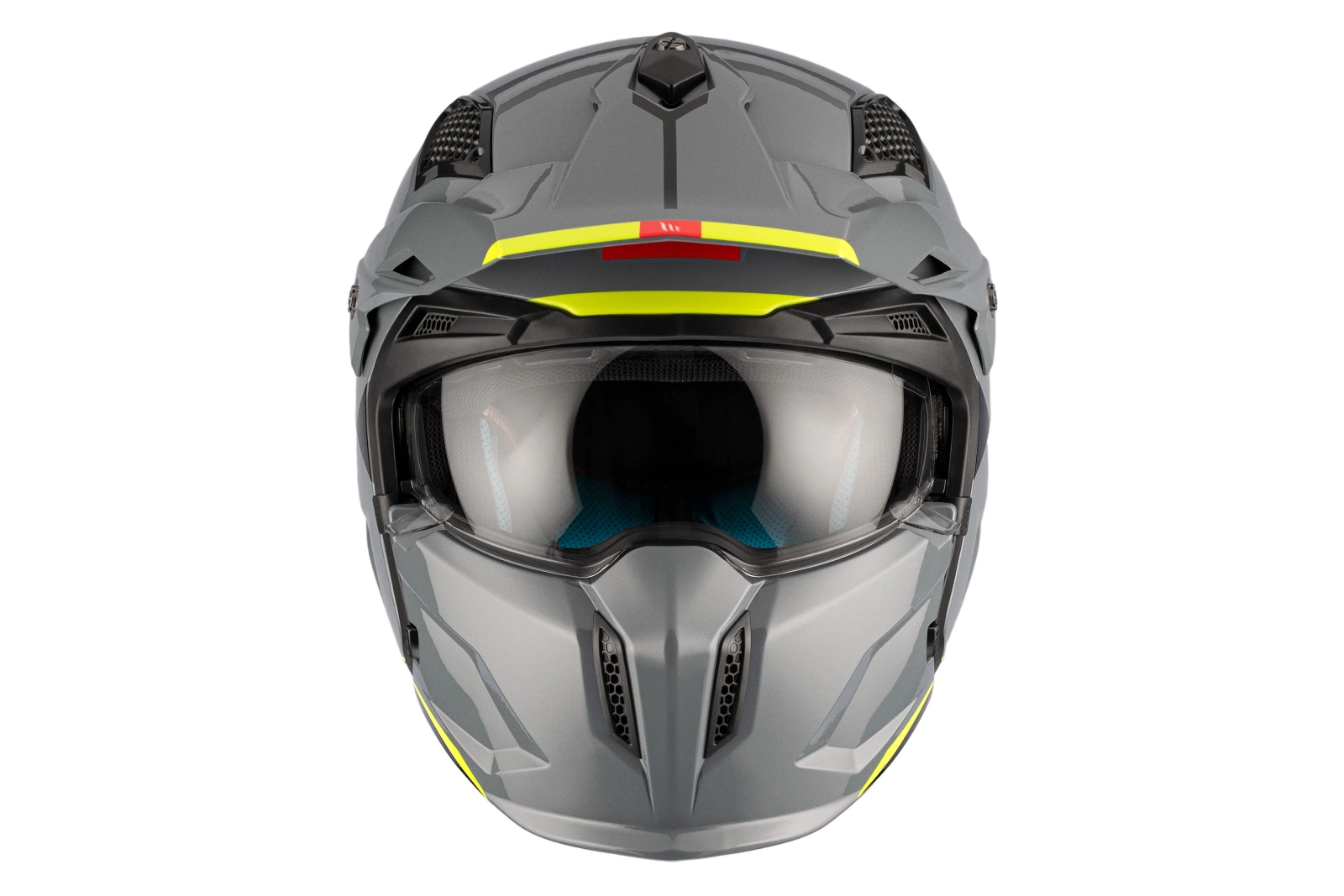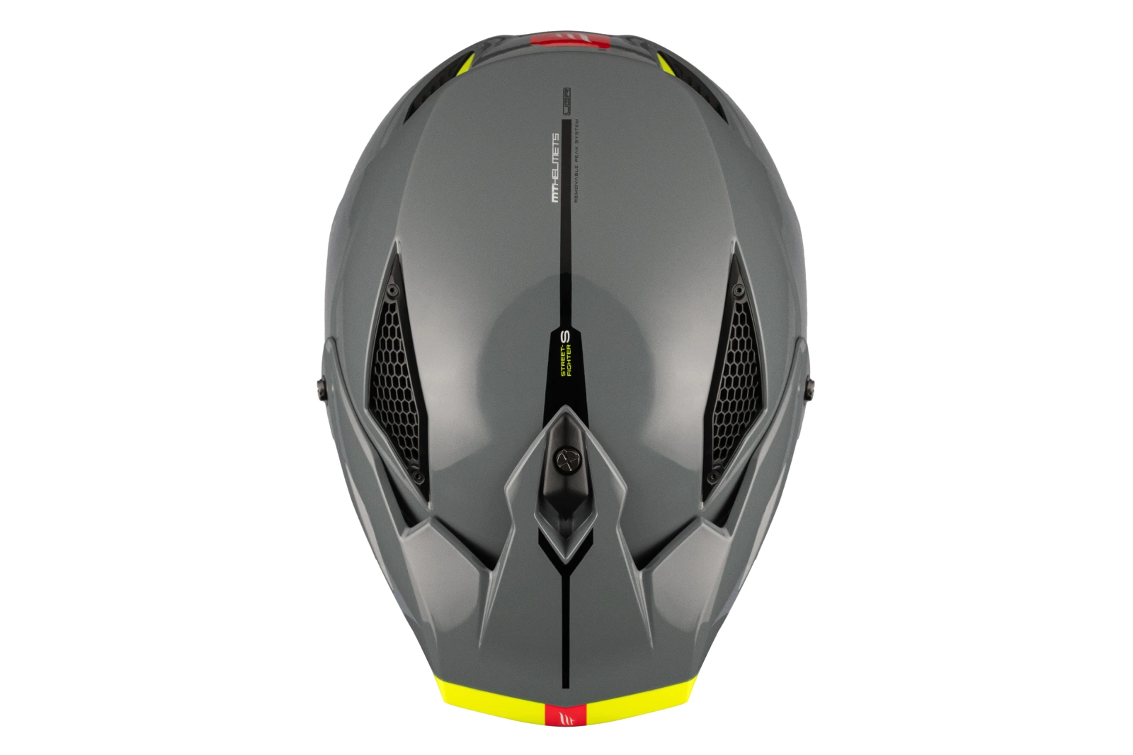 Kask motocyklowy MT Streetfighter SV został wykonany materiału HIRP, czyli wytrzymałego polimeru o doskonałych właściwościach absorpcji energii. Wyposażony w bezpieczne i wygodne zapięcie mikrometryczne oraz dodatkową przyciemnianą blendę, która umożliwia komfortową jazdę w słonecznych warunkach.