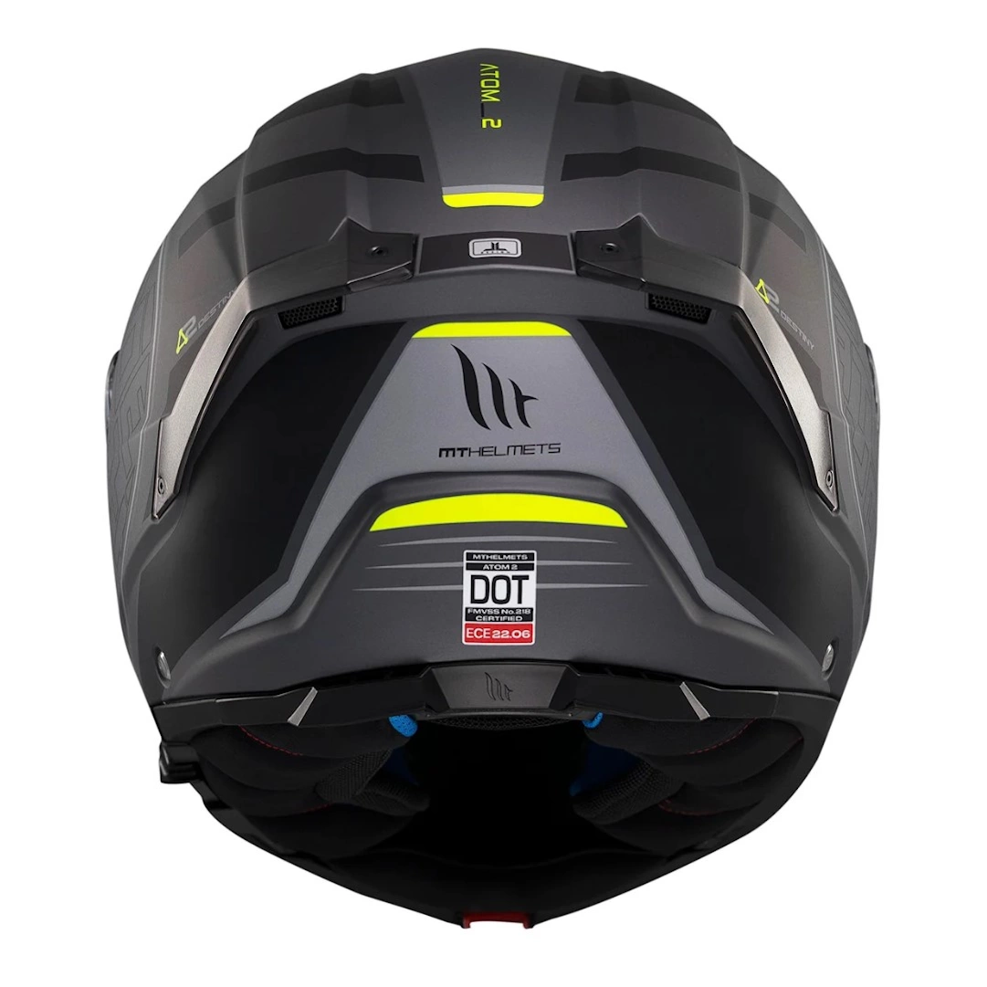 Kask motocyklowy Atom 2 SV posiada certyfikaty bezpieczeństwa ECE 22.06, DOT oraz homologację P/J, co świadczy o jego wysokim poziomie ochrony i zgodności z rygorystycznymi normami bezpieczeństwa. Homologacja P/J pozwala na użytkowanie kasku w dwóch pozycjach - z podniesioną lub z opuszczoną szczęką, w zależności od preferencji.