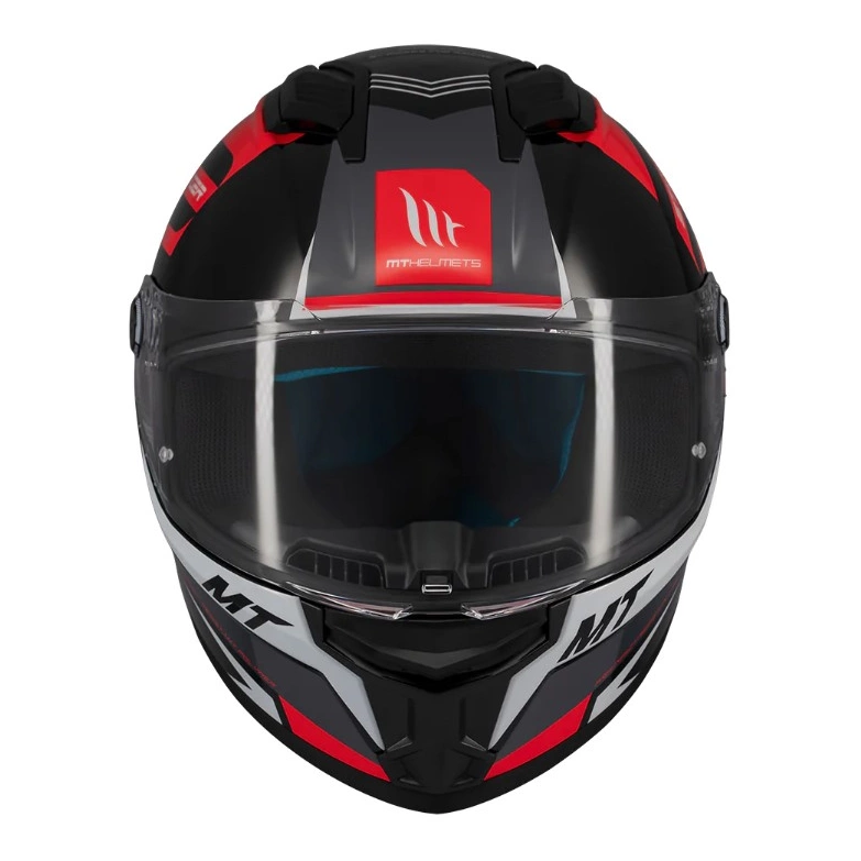 Wizjer MT-V-28B charakteryzuje się odpornością na zarysowania, oferując doskonałą widoczność w różnych warunkach atmosferycznych. Możliwość doposażenia wizjera w pinlock sprawia, że jest on jeszcze bardziej funkcjonalny. Główną funkcją deflektora nosowego jest zmniejszanie parowania szyby poprzez kierowanie strumienia powietrza z dala od obszaru nosa i ust motocyklisty. Działając jako bariera dla powietrza, pomaga w utrzymaniu klarownej widoczności podczas jazdy, zwłaszcza w warunkach wilgotnych czy deszczowych, kiedy parowanie szyby może być problemem. Tylny spojler dołączony do kasku gwarantuje stabilną pozycję przy wysokich prędkościach.