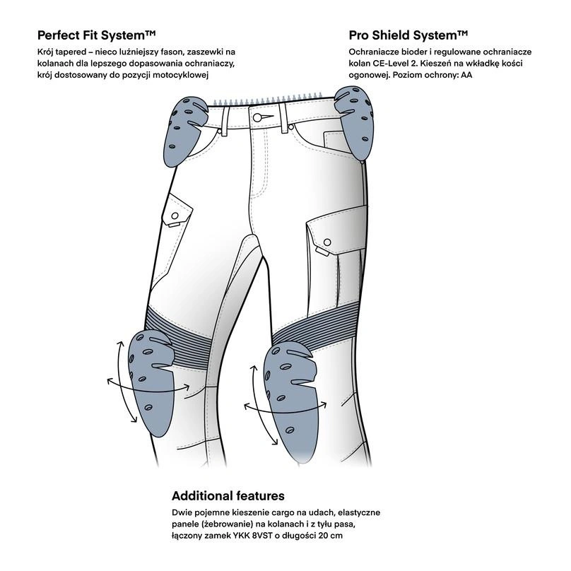 | Rozmiar | Obwód pasa (cm) | Obwód bioder (cm) | Dł. nogawki wew. (cm) | Typ nogawki |