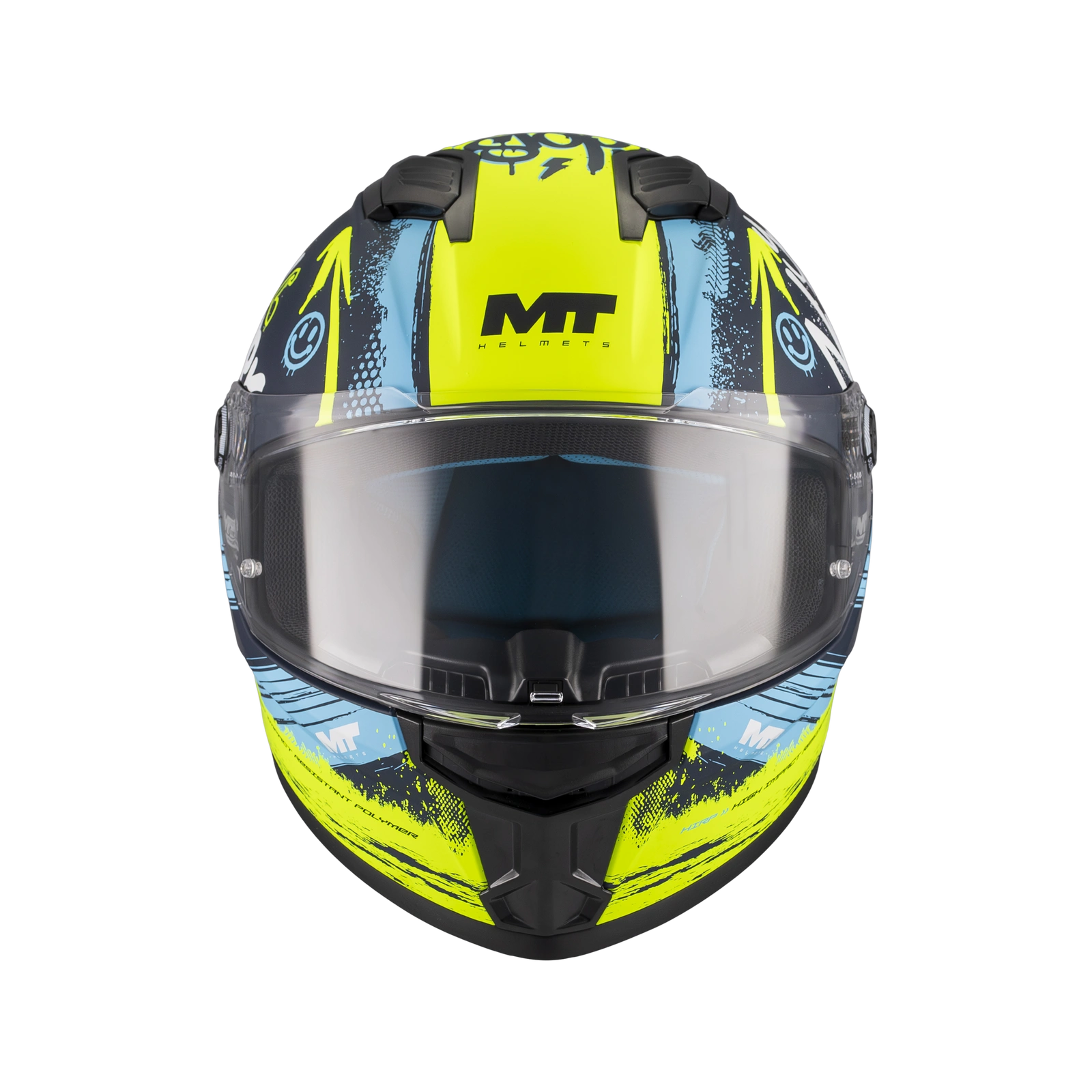 Wizjer MT-V-28B charakteryzuje się odpornością na zarysowania, oferując doskonałą widoczność w różnych warunkach atmosferycznych. Możliwość doposażenia wizjera w pinlock sprawia, że jest on jeszcze bardziej funkcjonalny. Główną funkcją deflektora nosowego jest zmniejszanie parowania szyby poprzez kierowanie strumienia powietrza z dala od obszaru nosa i ust motocyklisty. Działając jako bariera dla powietrza, pomaga w utrzymaniu klarownej widoczności podczas jazdy, zwłaszcza w warunkach wilgotnych czy deszczowych, kiedy parowanie szyby może być problemem. Tylny spojler dołączony do kasku gwarantuje stabilną pozycję przy wysokich prędkościach.