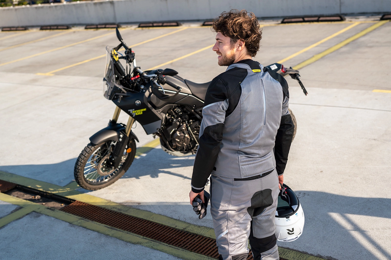 Plecy, barki i łokcie wzmocniono certyfikowanymi protektorami CE podwyższonego, drugiego levelu. Ich zadaniem jest ochrona najbardziej narażonych podczas upadku partii ciała. Pochłaniają siłę uderzeniową i amortyzują samo uderzenie chroniąc przed urazami i kontuzjami. Na ciele są swobodne i elastyczne, pracują wraz z ruchami kierowcy nie ograniczając go, a w momencie zderzenia natychmiastowo twardnieją tworząc twardy pancerz ochronny. Istnieje możliwość doposażenia zestawu o opcjonalny protektor klatki piersiowej SAS-TEC, który również znajdziecie w ofercie naszego sklepu.