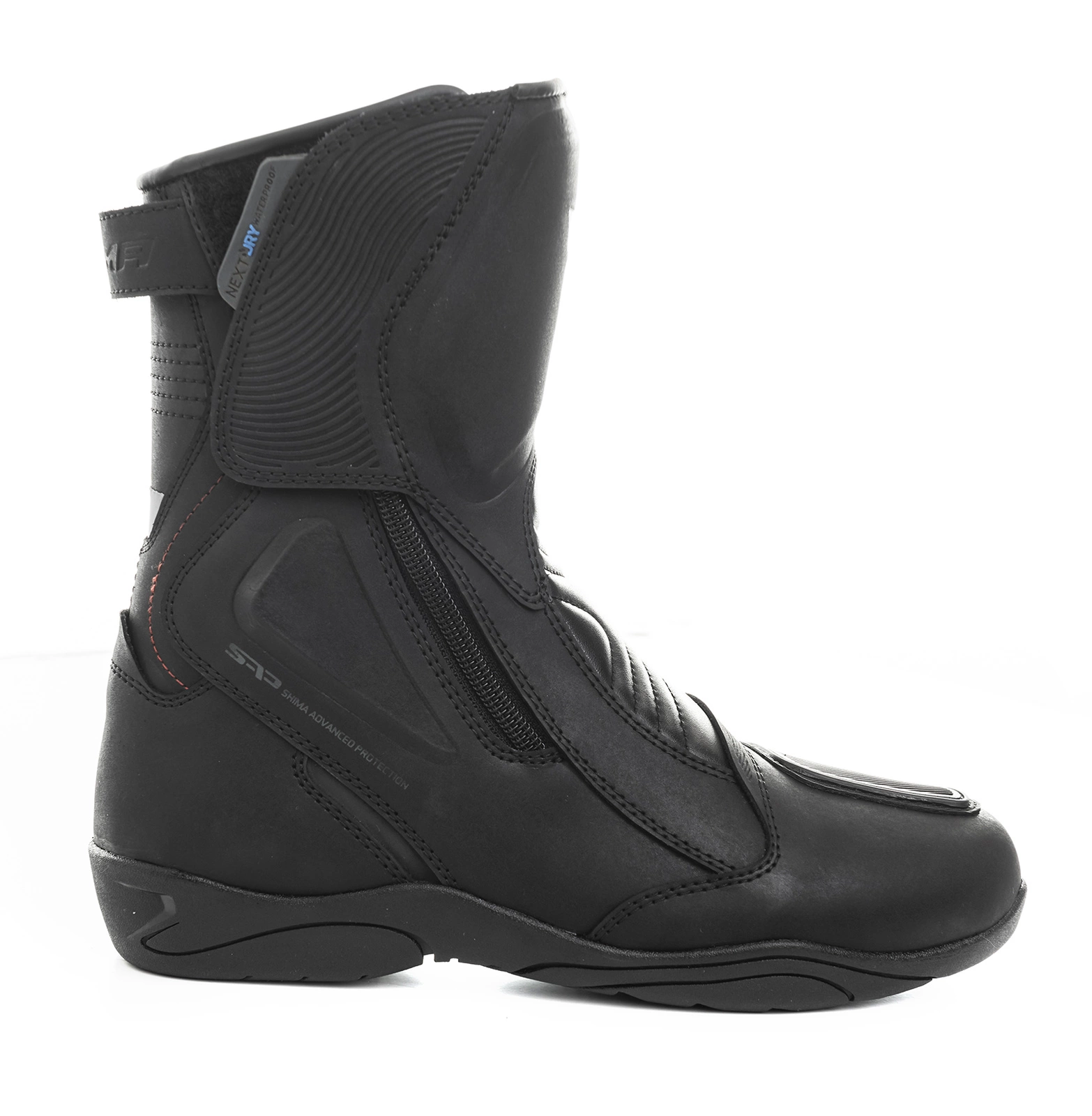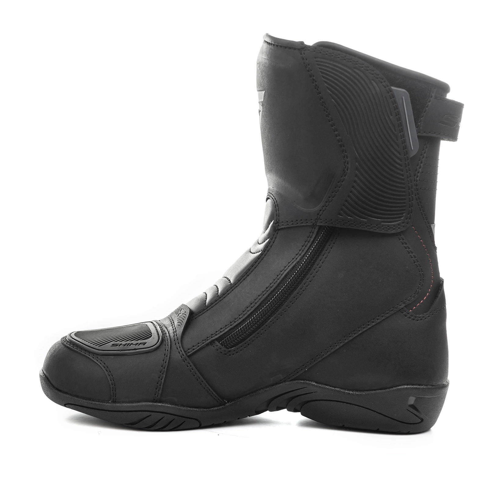 Dwa suwaki umieszczone po bokach ułatwiają zakładanie oraz zdejmowanie obuwia utrzymując stopę stabilną przez cały czas bez obawy o poluzowane sznurówki -stopa jest stabilna od założenia do zdjęcia butów. Podeszwa jest gumowa oraz ergonomiczna co poprawia komfort oraz bezpieczeństwo jazdy, ponieważ zapobiega ślizganiu się na podnóżku. W miejscu gdzie but styka się z dźwignią zmiany biegów zastosowano wzmocnienie, które zapobiega zbyt dużej eksploatacji materiału oraz działa antypoślizgowo i stabilizująco. Nad piętą znajduje się pasek do naciągania butów, który umożliwia nam wygodne złapanie nawet w rękawicach.