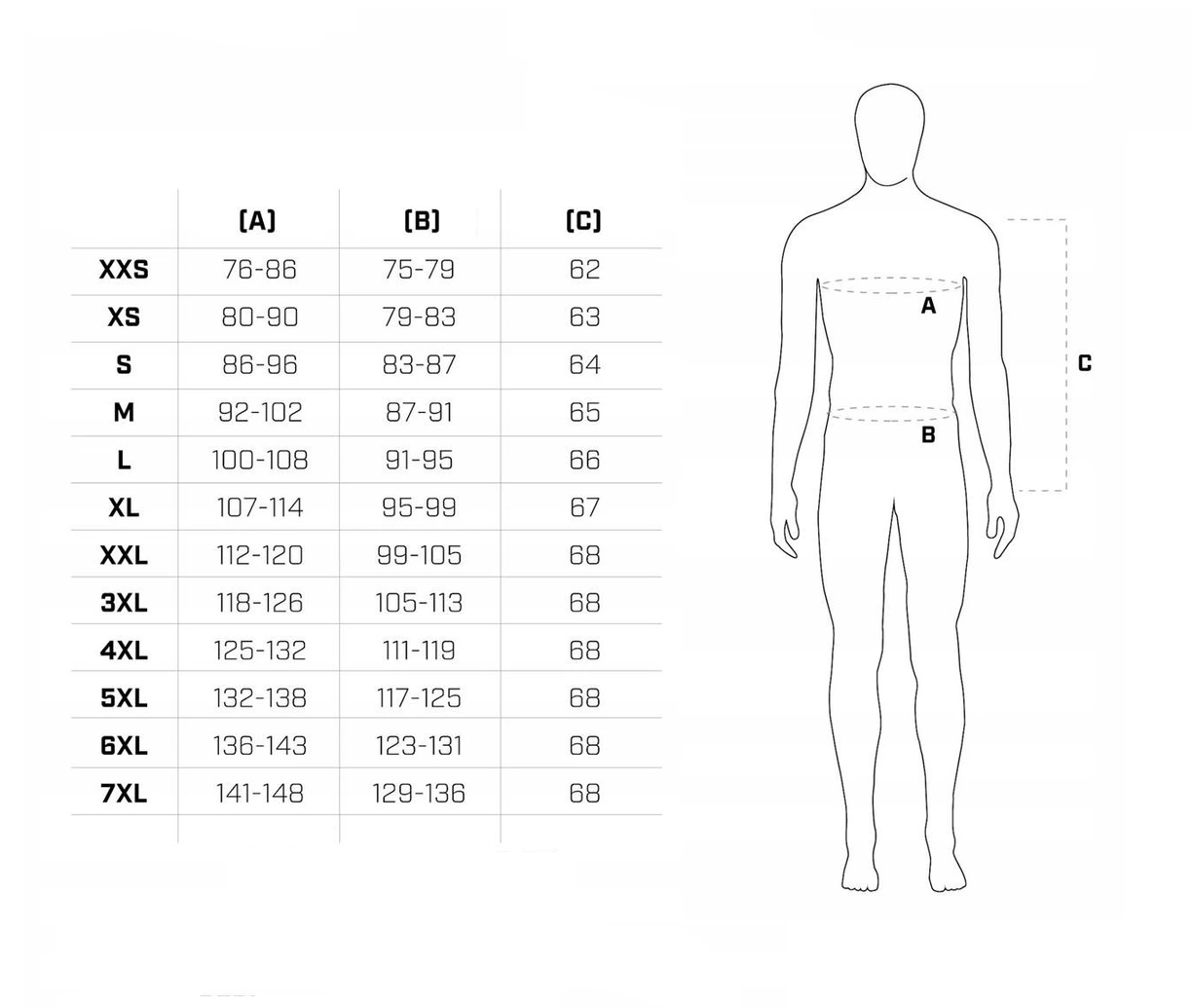 7XL | 141-148 | 129-136 |