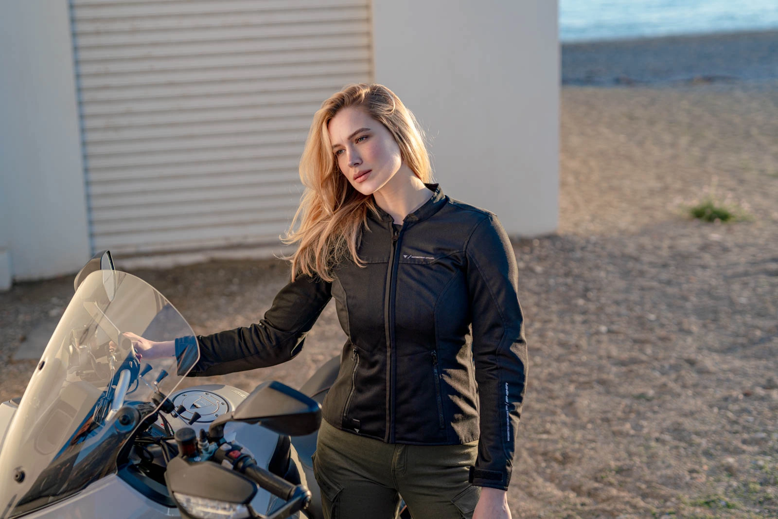 Tekstylna pozycja z dużą ilością meshu, która posiada wszelkie niezbędne zabezpieczenia i protektory charakterystyczne dla odzieży motocyklowej.