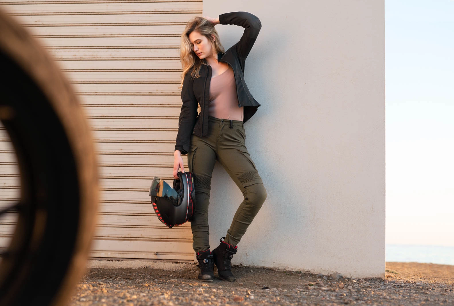 Kurtka, mimo swojej lekkiej formuły posiada wszystkie niezbędne zabezpieczenia i wzmocnienia kwalifikujące ją jako motocyklową odzież ochronną. Na plecach, w barkach oraz łokciach znajdziemy certyfikowane protektory. Ochraniacz kręgosłupa występuje w podwyższonym, drugim levelu bezpieczeństwa. Protektory posiadają specjalną strukturę plastra miodu, dzięki czemu nawet miejsca, które ochraniają nie są pozbawione wentylacji i dostępu do świeżego powietrza. Protektory wygodnie pracują na ciele nie ograniczając ruchów kierowcy, a w momencie zderzenia amortyzują i pochłaniają siłę uderzeniową.
